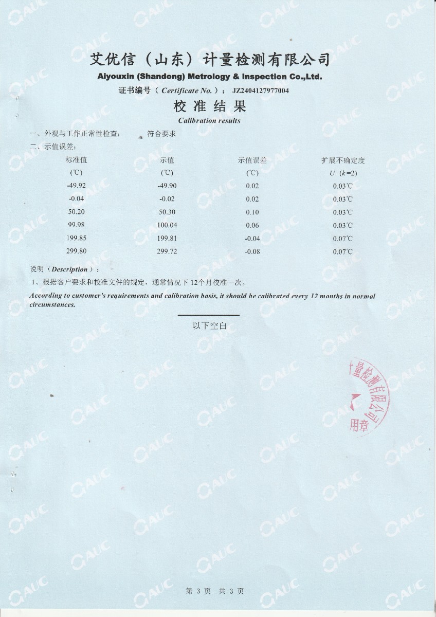 高精度數(shù)字溫度計校準證書 2024-4-13 本文被閱讀 7320 次