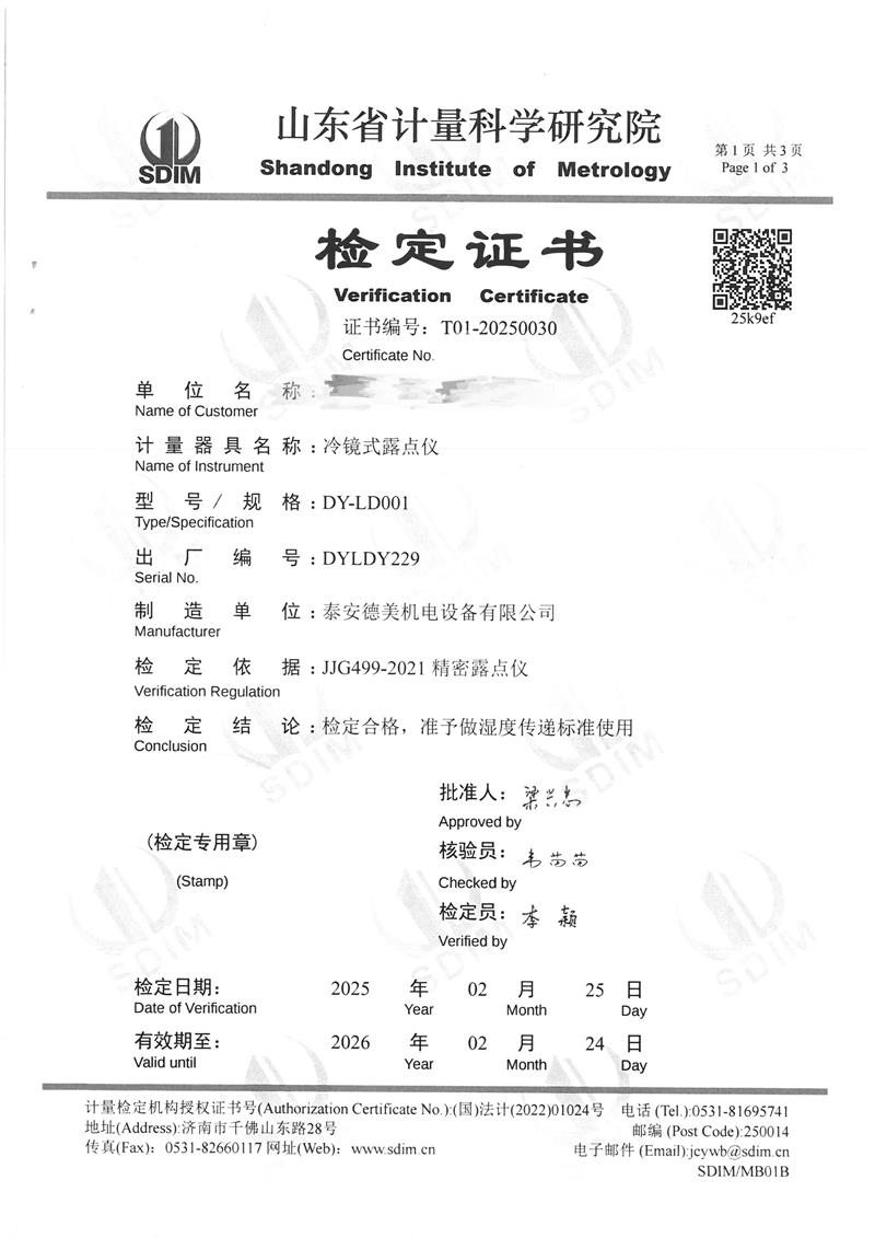 露點儀檢定、校準證書 2025-3-8 本文被閱讀 4428 次