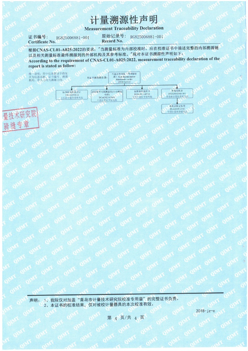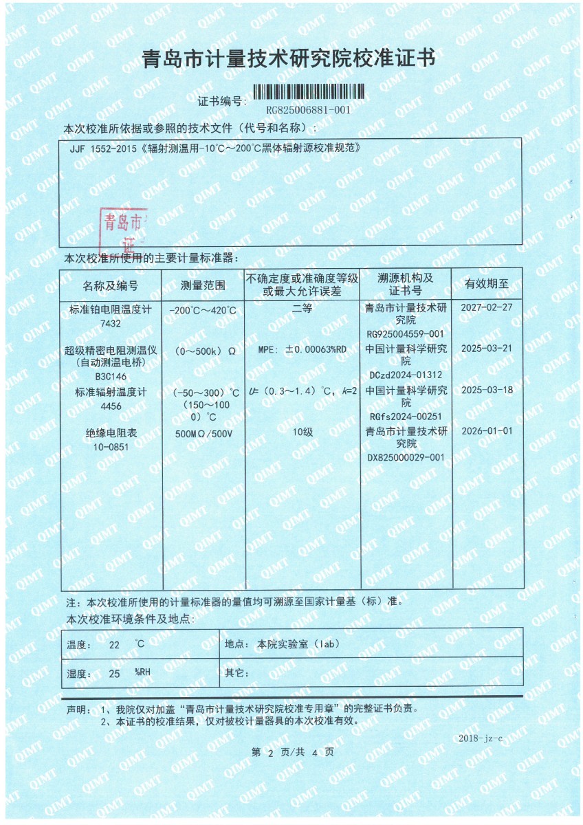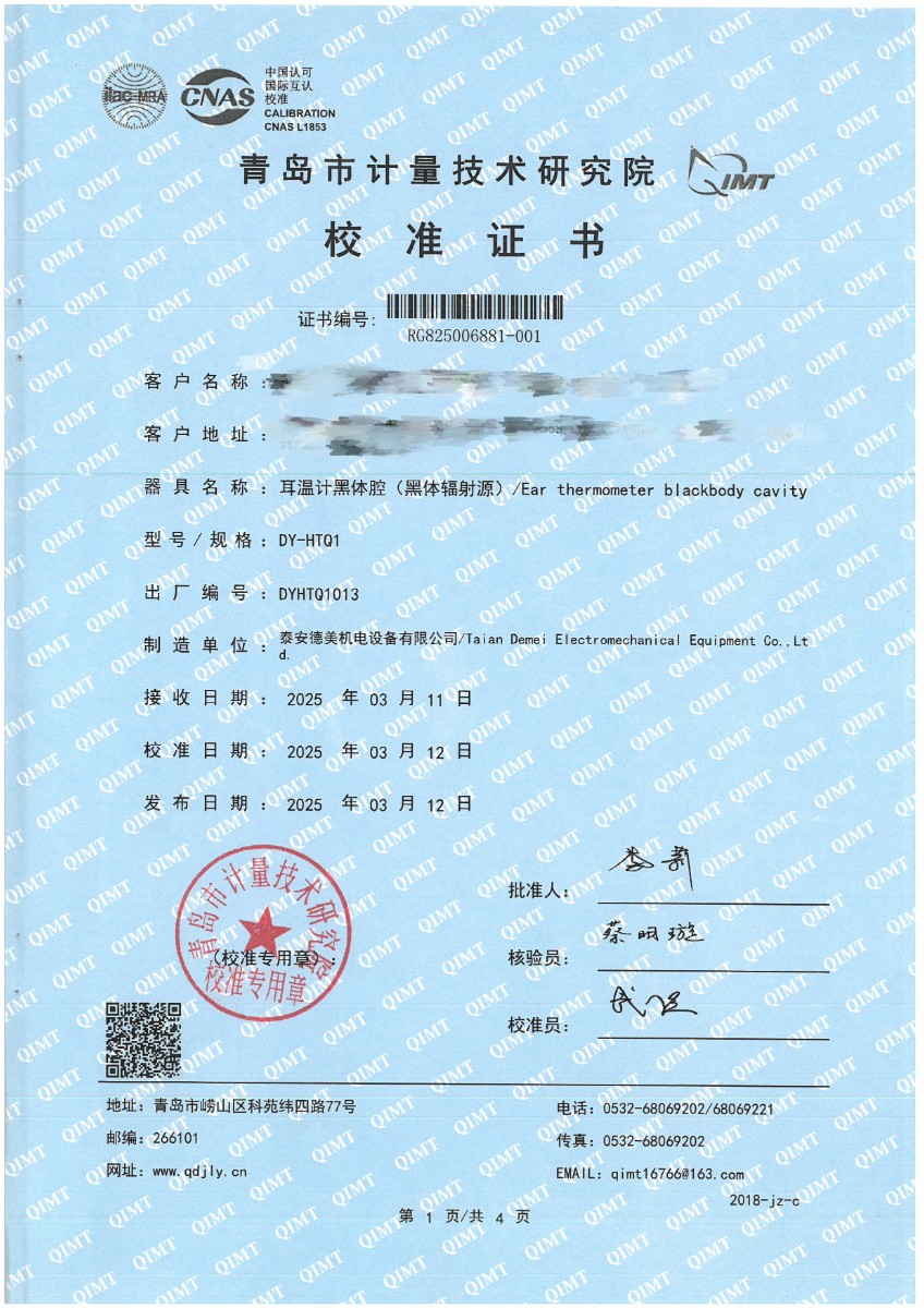 耳溫計黑體空腔校準(zhǔn)證書 2025-3-25 本文被閱讀 4460 次