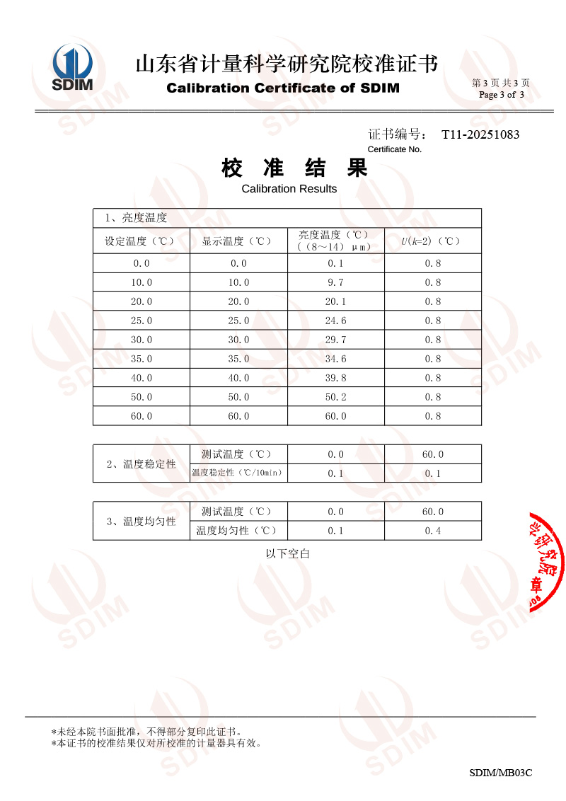 低溫面源黑體爐(0-60℃)校準(zhǔn)證書
