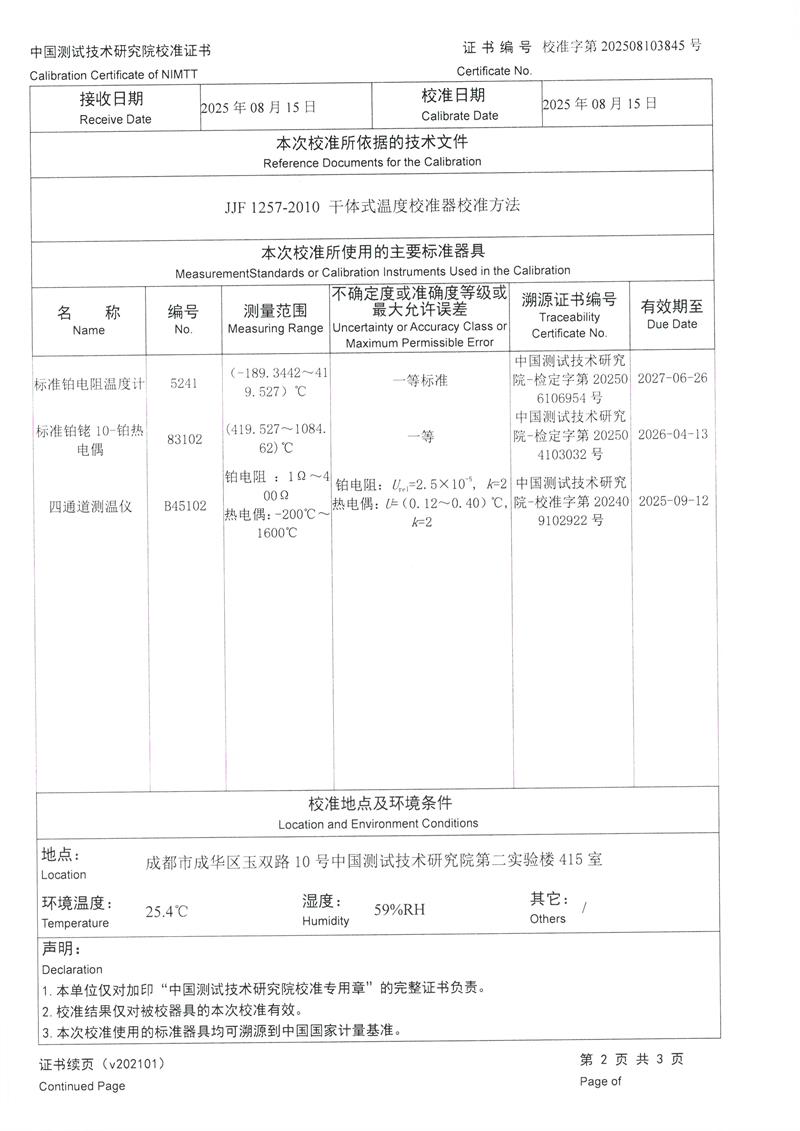 | 上一條:高精度低溫黑體(-10-100℃)校準(zhǔn)證書 | 下一條:高精度制冷恒溫槽(-80~100℃)校準(zhǔn)證書 |