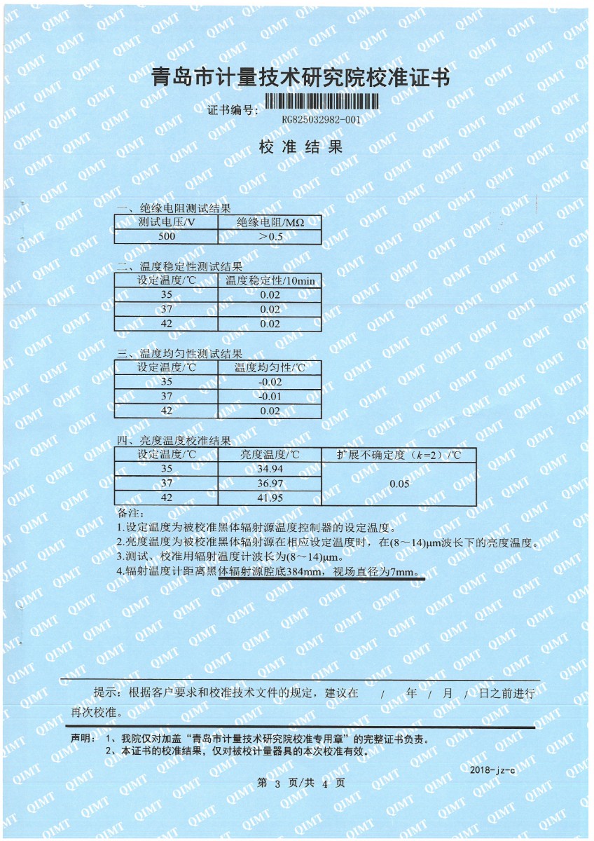 額溫計黑體空腔-校準證書 2025-9-23 本文被閱讀 2210 次