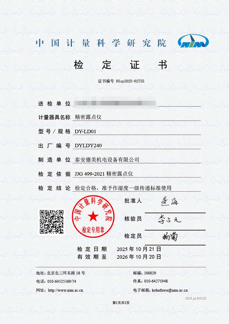 露點儀檢定證書 2025-10-30 本文被閱讀 1150 次