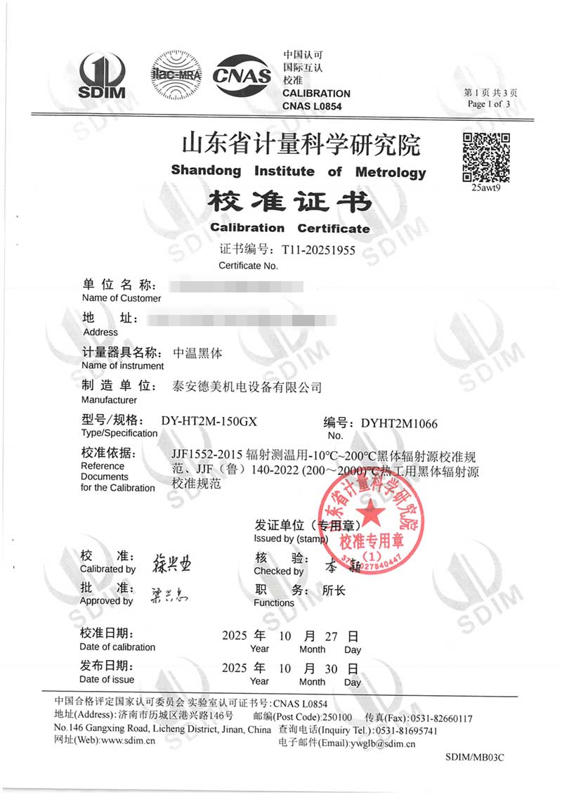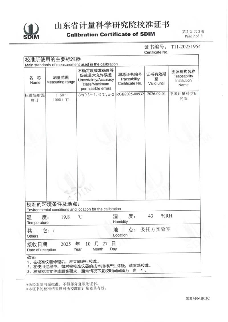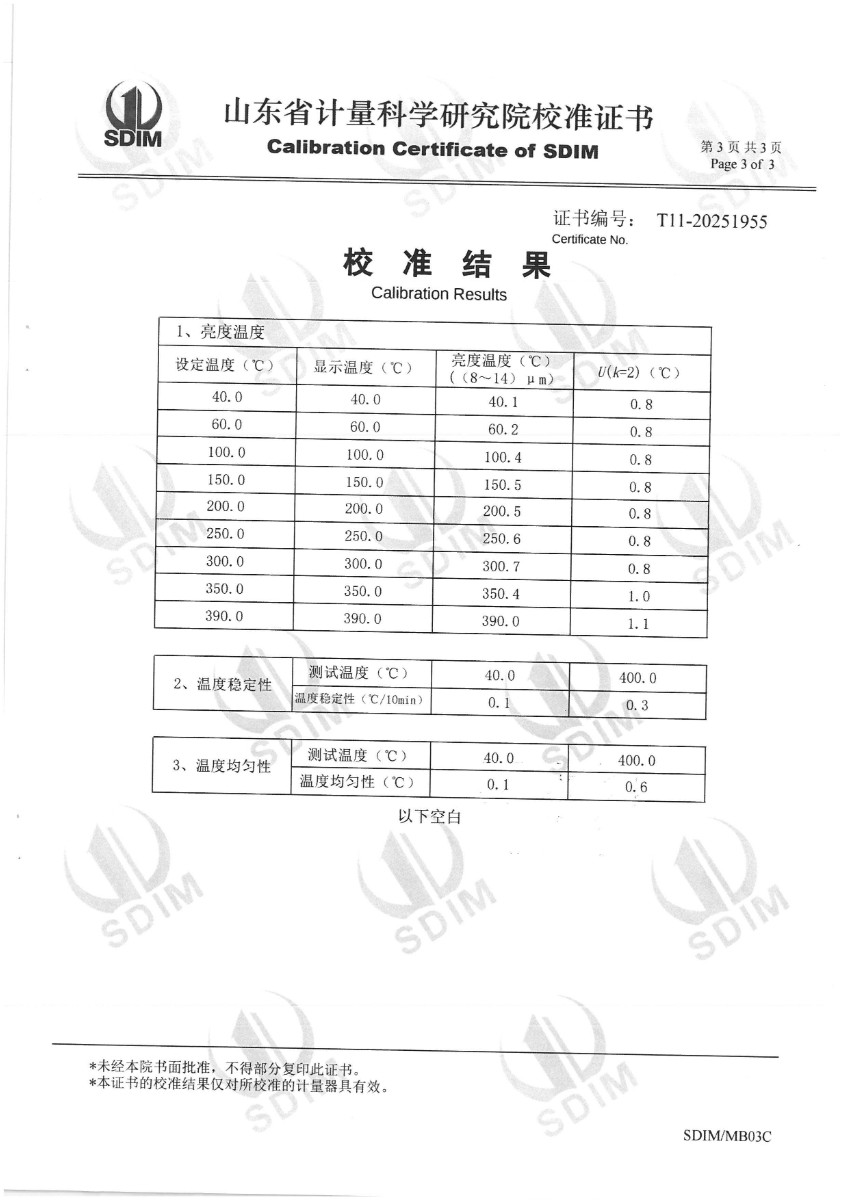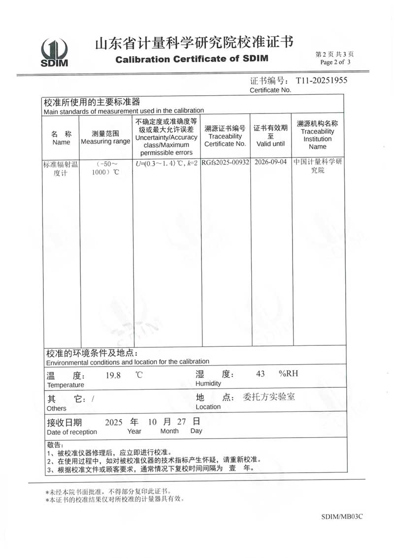 中溫黑體(室溫+5~400℃)校準(zhǔn)證書 2025-11-5 本文被閱讀 905 次