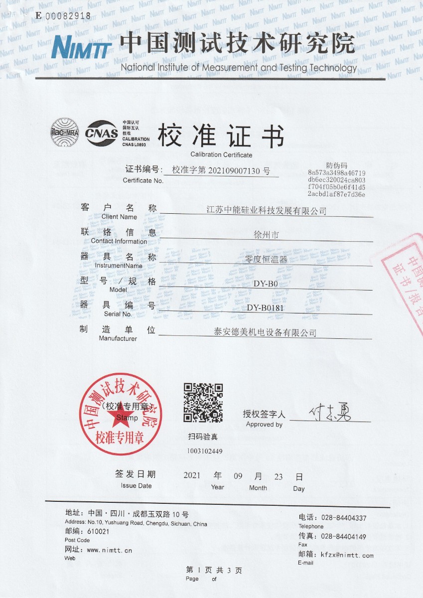 | 上一條:江蘇中能硅業(yè)科技發(fā)展有限公司-S分度補償導(dǎo)線 | 下一條:中溫面源黑體爐-校準(zhǔn)證書 |