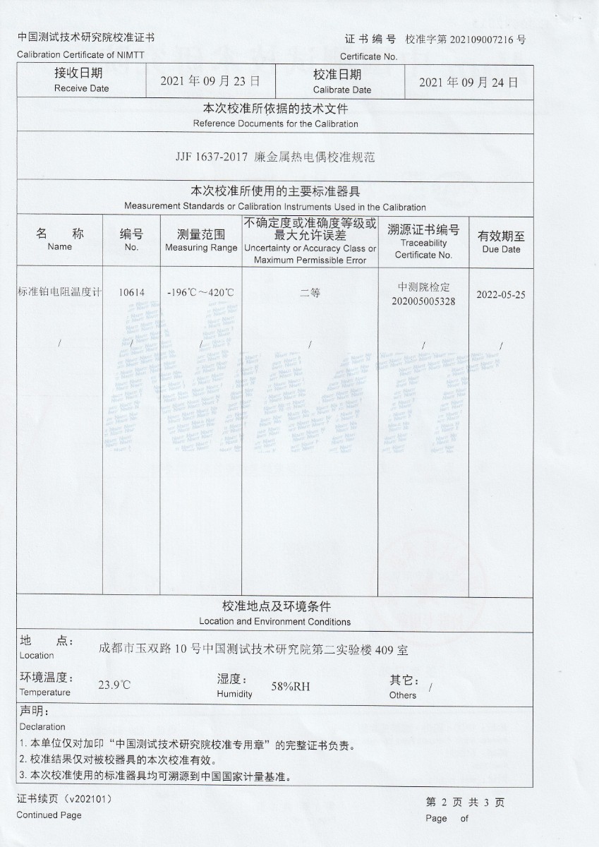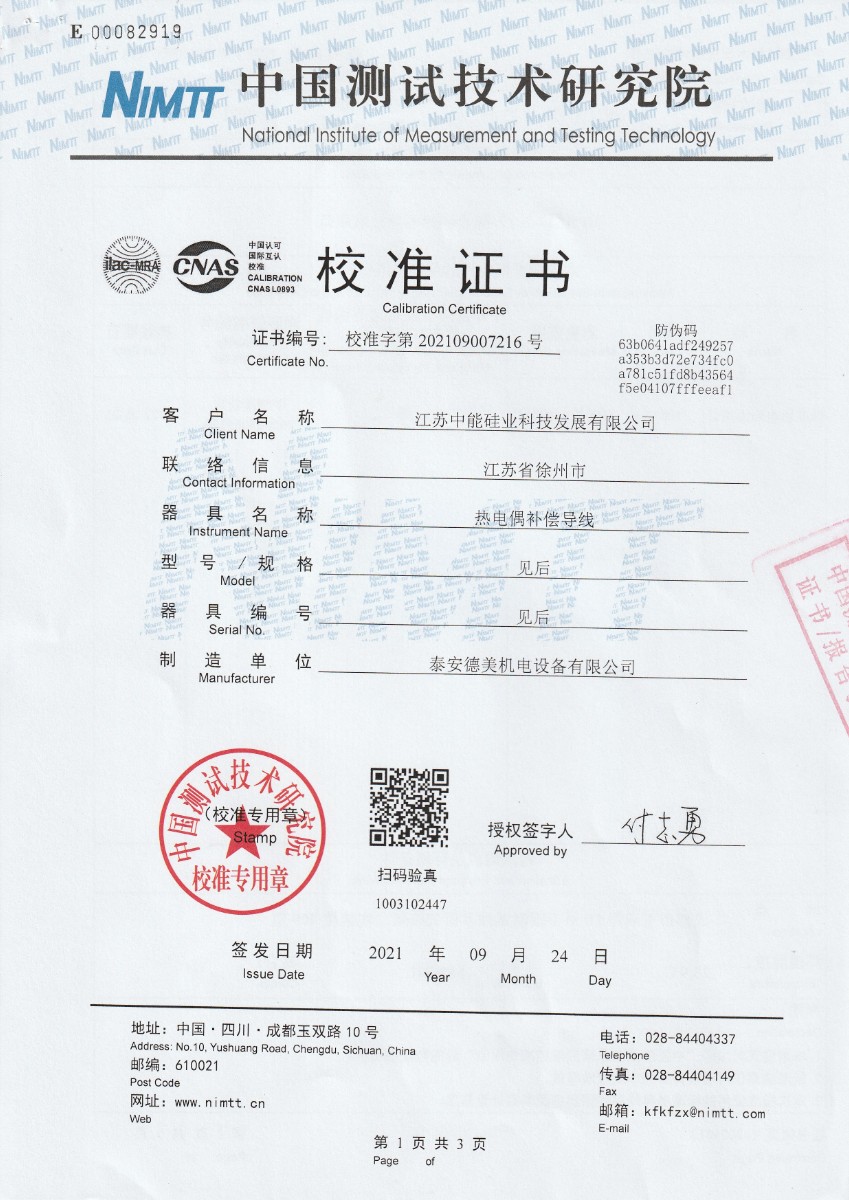 | 上一條:江蘇中能硅業(yè)科技發(fā)展有限公司-零度恒溫器 | 下一條:中溫面源黑體爐-校準證書 |