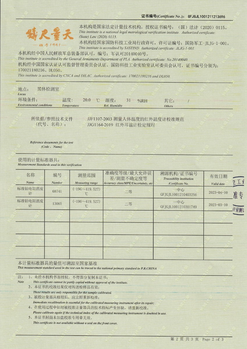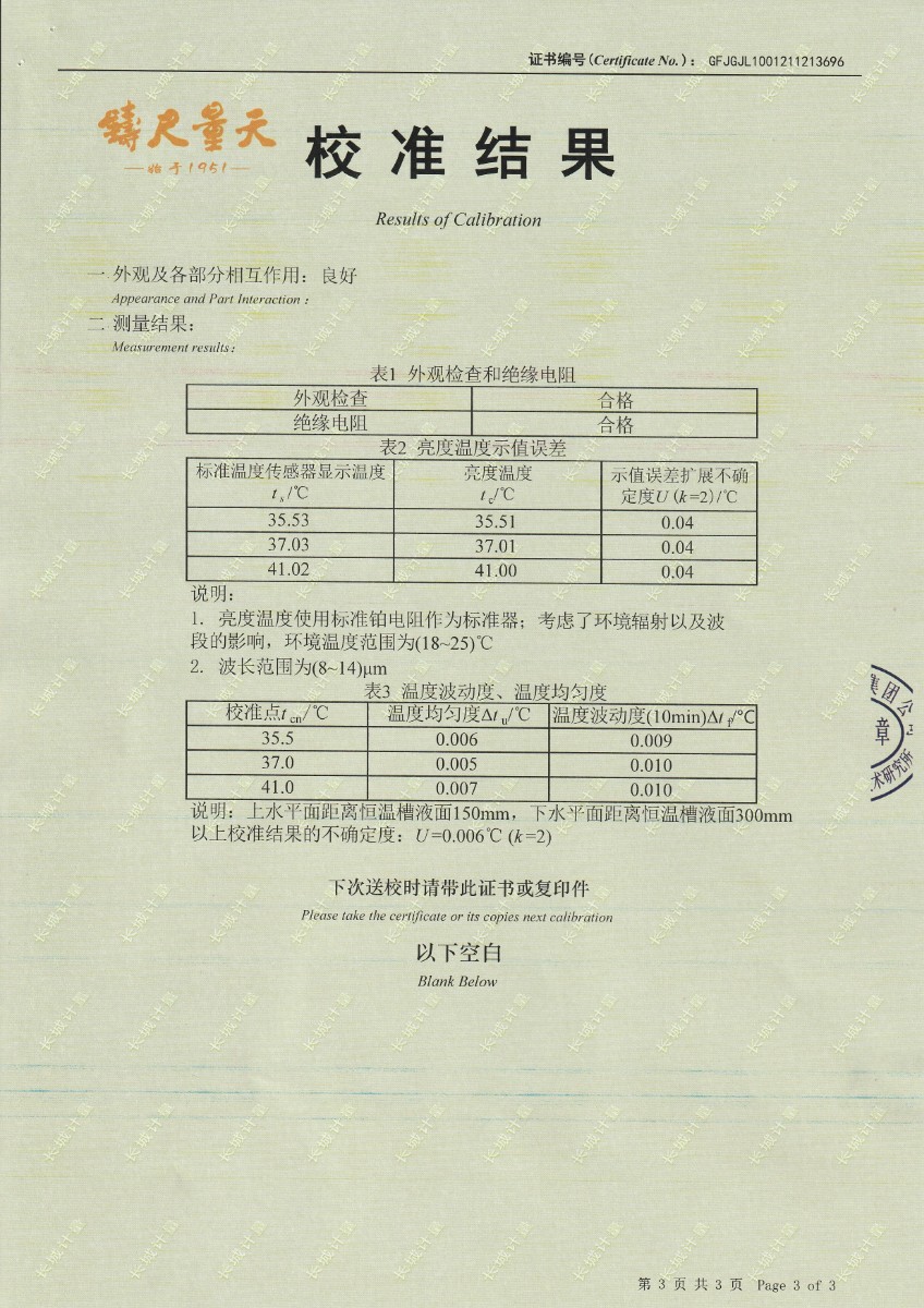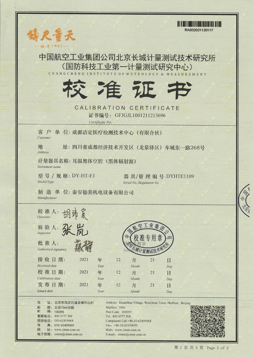 | 上一條:成都潔定醫(yī)療檢測(cè)技術(shù)-額溫黑體空腔 | 下一條:高精度制冷恒溫槽(-80~100℃)校準(zhǔn)證書(shū) |
