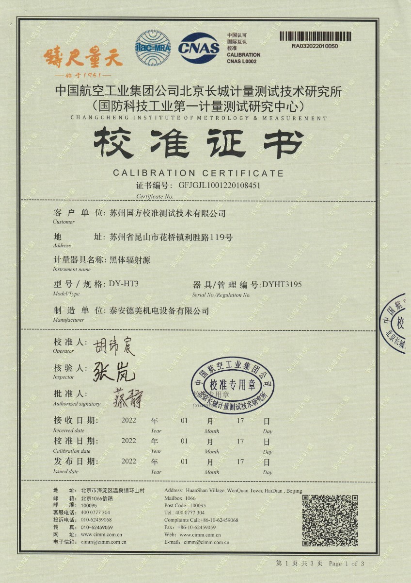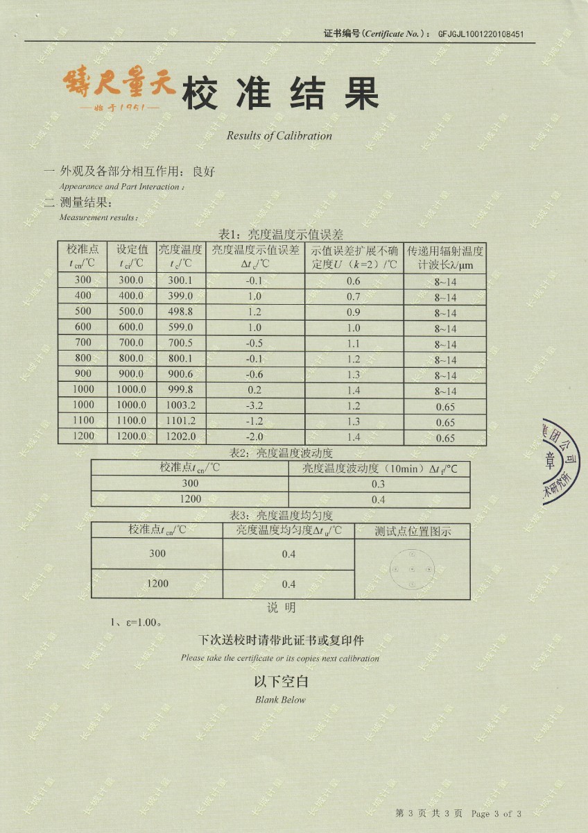 | 上一條:青島加侖檢測(cè)技術(shù)服務(wù)有限公司-黑體輻射源 | 下一條:高精度制冷恒溫槽(-80~100℃)校準(zhǔn)證書 |
