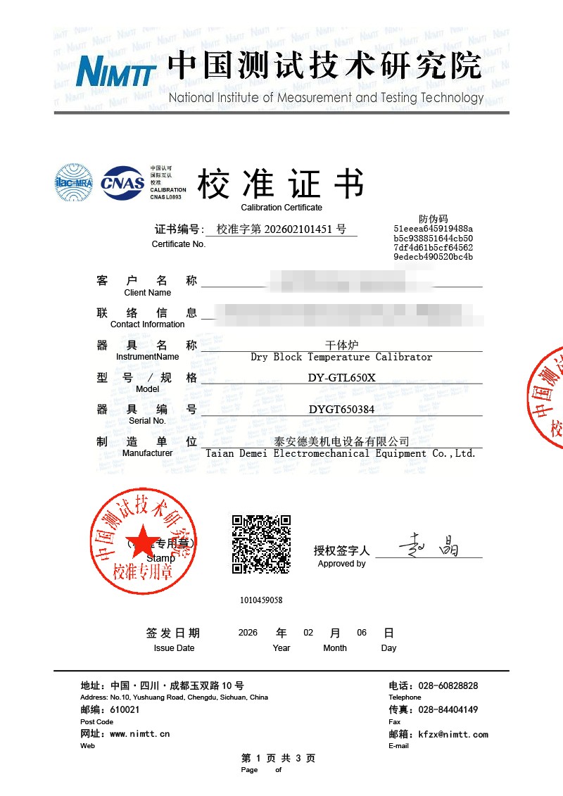 中溫干體-校準證書 2026-2-11 本文被閱讀 175 次