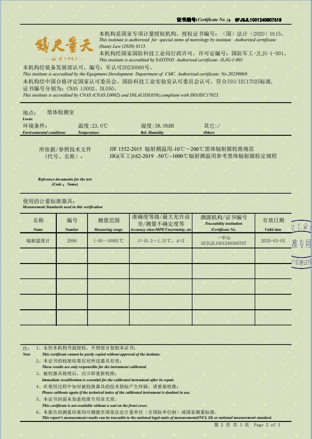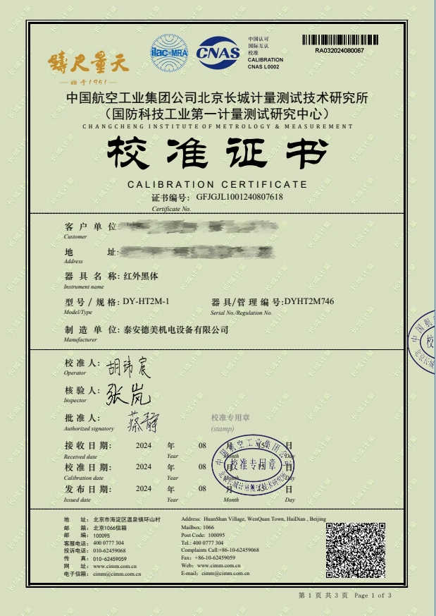 紅外黑體,室溫+5-300℃校準證書 2024-8-29 本文被閱讀 8426 次