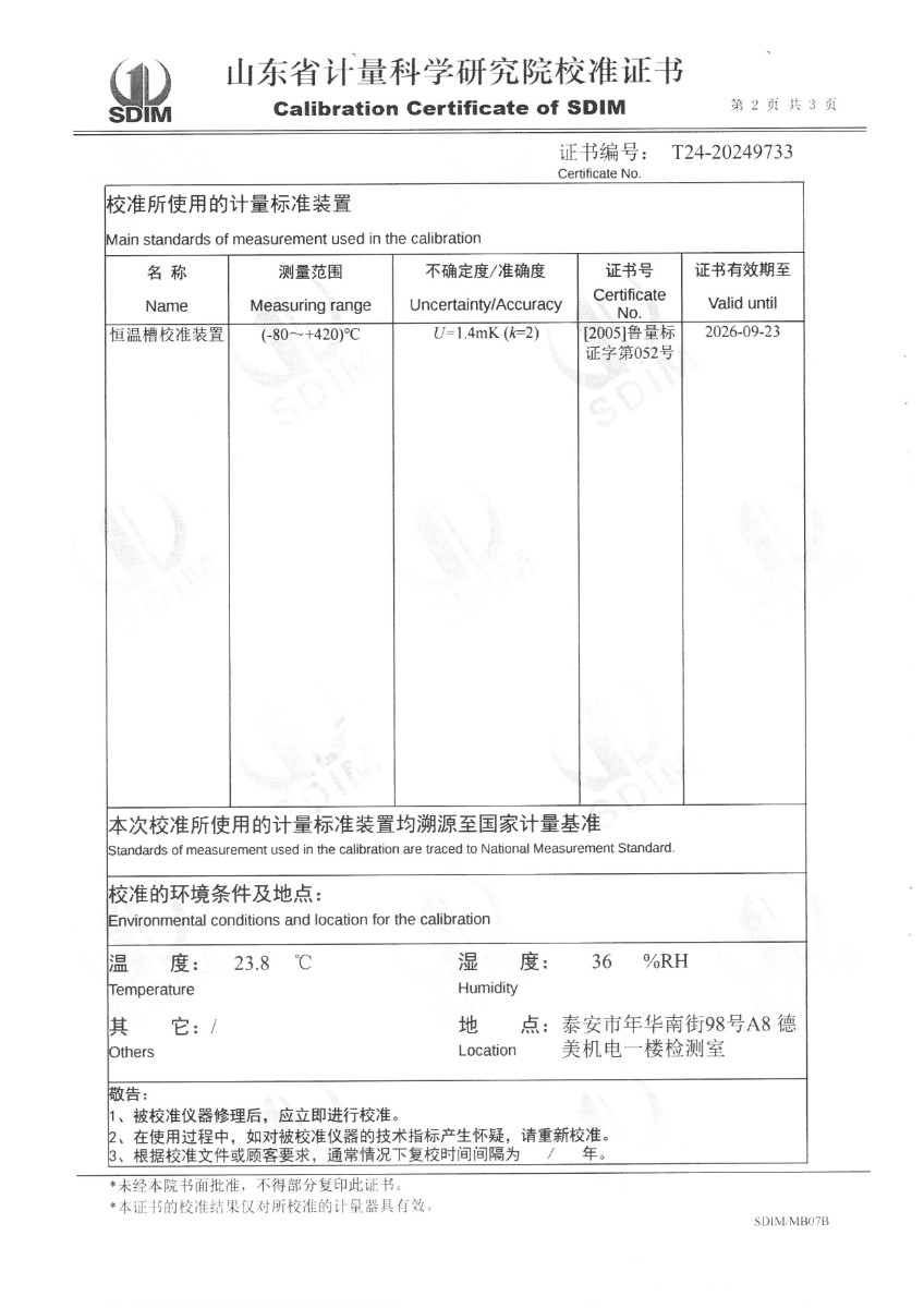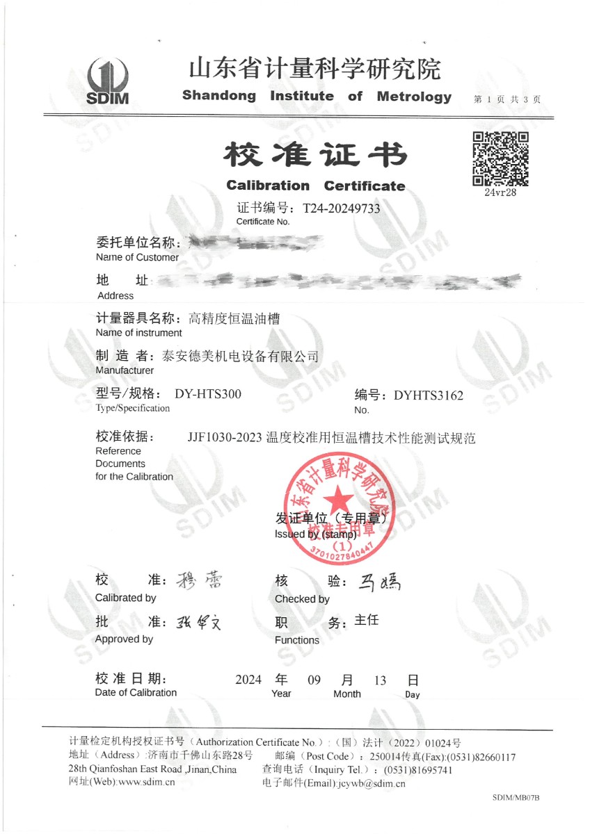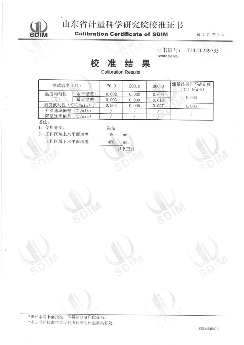 高精度恒溫油槽(70~300)℃校準證書 2024-9-25 本文被閱讀 7328 次