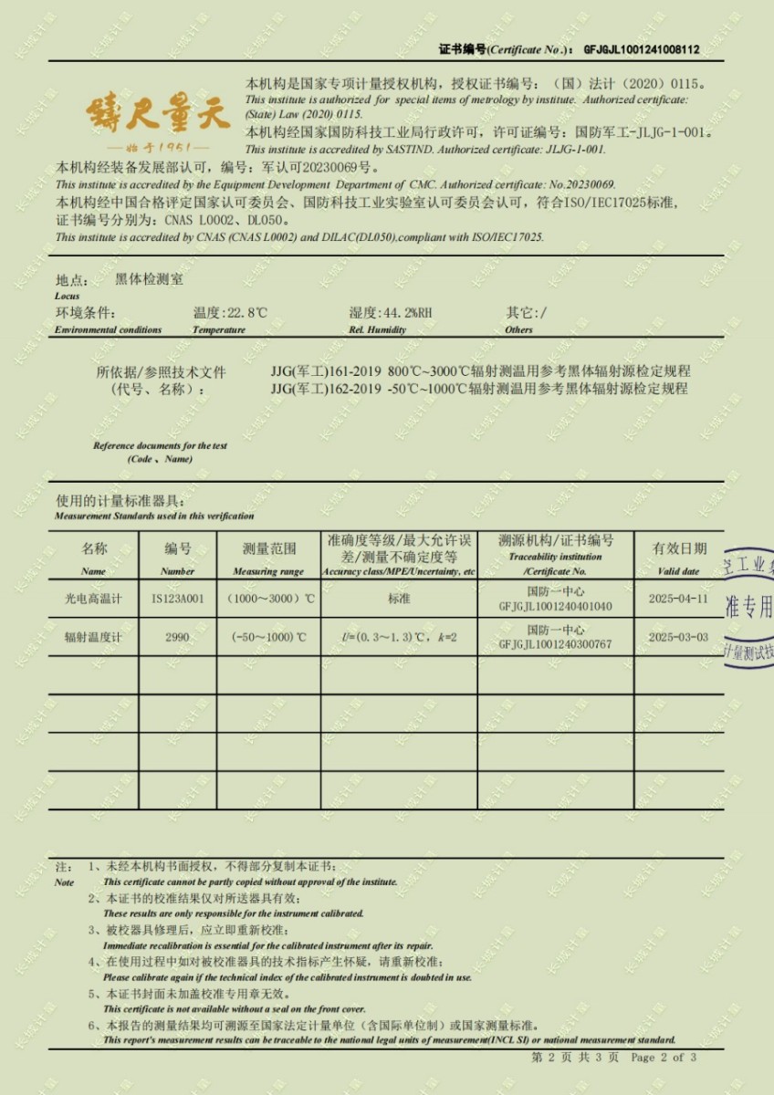 高溫黑體爐(700-1600℃)校準(zhǔn)證書 2024-11-6 本文被閱讀 6694 次