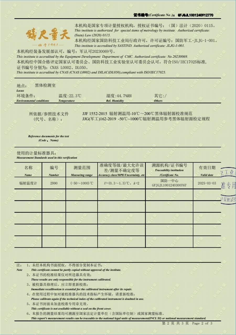 面源黑體爐校準(zhǔn)證書 2024-11-27 本文被閱讀 7463 次