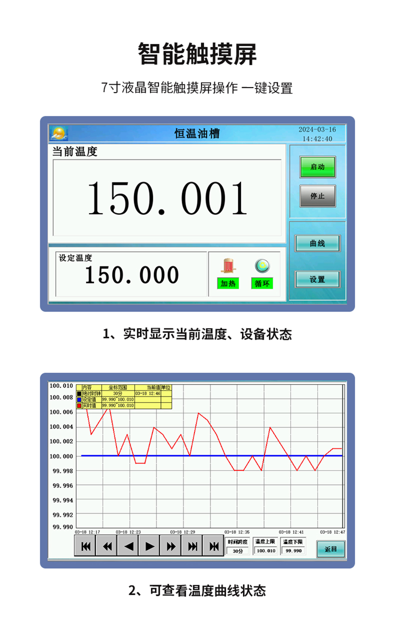 3.7寸液晶智能觸摸屏操作,檢測數(shù)值一鍵設(shè)置,一鍵啟停,直觀簡單