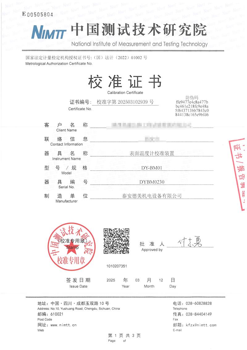 | 上一條:DY-BM02型表面溫度計校驗爐 | 下一條:高精度制冷恒溫槽(-80~100℃)校準證書 |