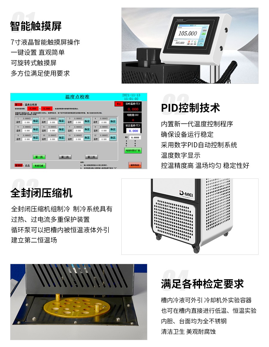 DY-RTS05制冷恒溫槽(0℃~95℃)是高精度自控式溫度檢定設(shè)備,控溫精度高,溫場均勻,穩(wěn)定性好,操作方便,采用全封閉壓縮機制冷系統(tǒng),外殼和內(nèi)膽都采用全不銹鋼材料制造,產(chǎn)品供計量部門作一、二等標準水銀溫度計,貝克曼溫度計。工業(yè)鉑熱電阻,標準銅-康銅熱電偶檢定之用,也可作高精度熱、冷源供生產(chǎn)、科研使用。制冷恒溫槽是一種高精度自控式數(shù)顯溫度檢定裝置,它具有溫度穩(wěn)定性好,溫場均勻,控溫精度高等特點。制冷系統(tǒng)采用全封閉制冷機,具有噪音低、可靠性好、壽命長。數(shù)顯溫控儀按PID調(diào)節(jié)規(guī)律實現(xiàn)溫度自動控制,結(jié)構(gòu)緊湊、操作方便、槽溫讀數(shù)直觀。適用于各計量、生化、石油、氣象、能源、環(huán)保、醫(yī)藥等部門及生產(chǎn)溫度計、控溫器等廠家進行物理參數(shù)的檢測,并可為其他實驗研究工作提供恒溫源。