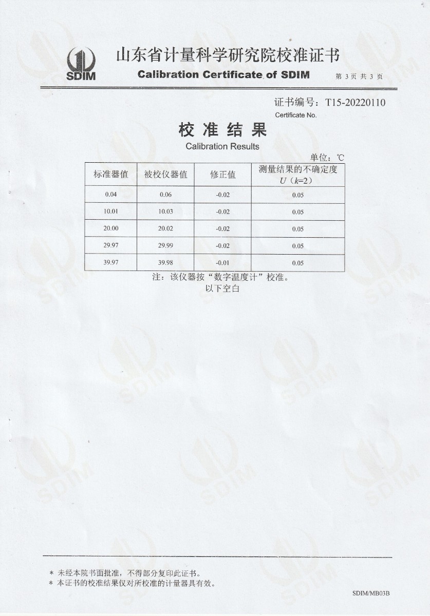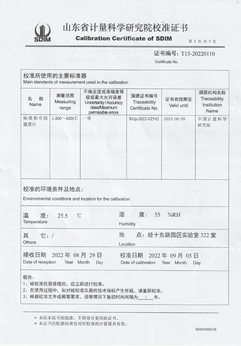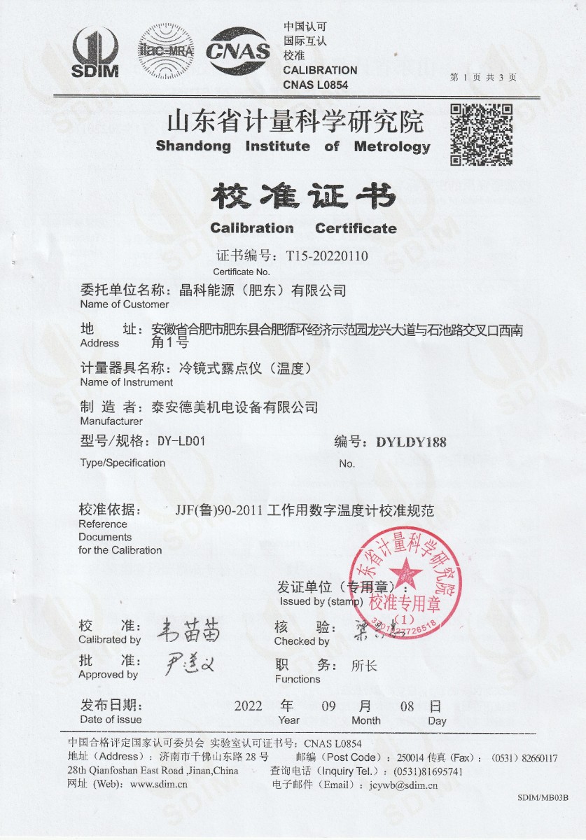 | 上一條:晶科能源(肥東)有限公司-冷鏡式露點儀檢定證書 | 下一條:高精度制冷恒溫槽(-80~100℃)校準(zhǔn)證書 |