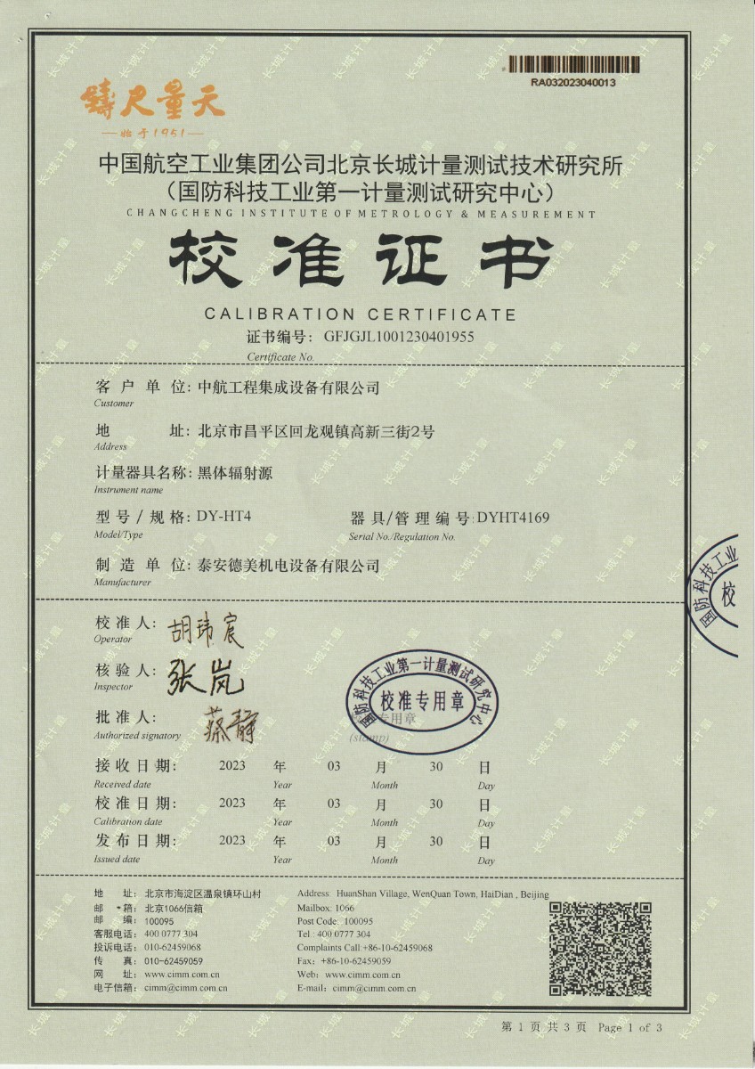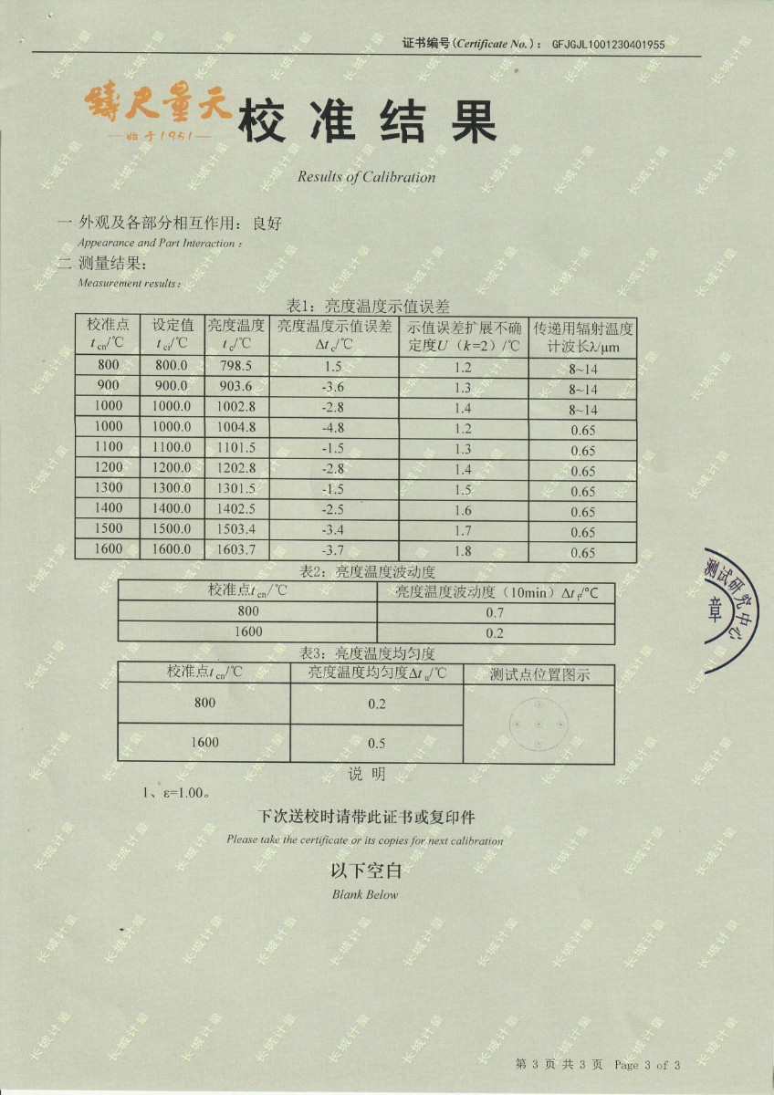 中航工程集成設(shè)備有限公司 黑體輻射源 校準(zhǔn)證書 (1) 2023-5-4 本文被閱讀 13936 次