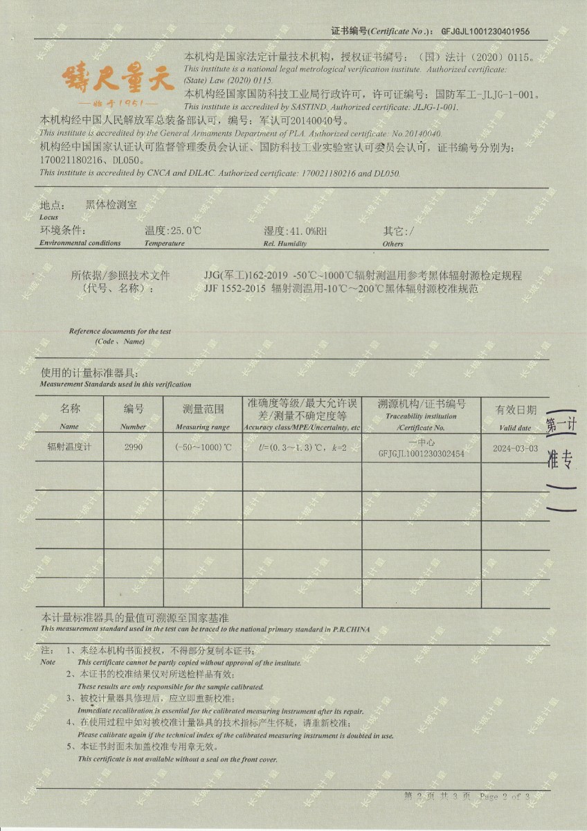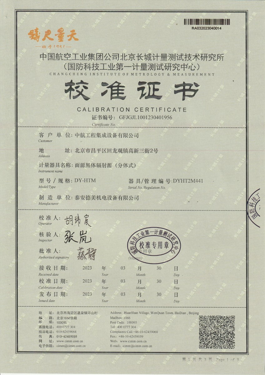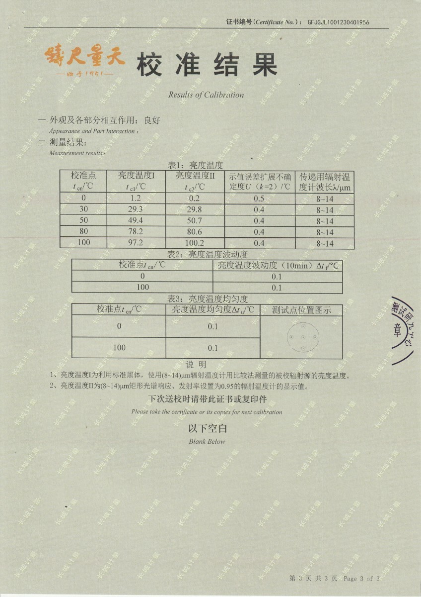 | 上一條:中航工程集成設(shè)備有限公司 黑體輻射源 校準(zhǔn)證書 (2) | 下一條:高精度制冷恒溫槽(-80~100℃)校準(zhǔn)證書 |