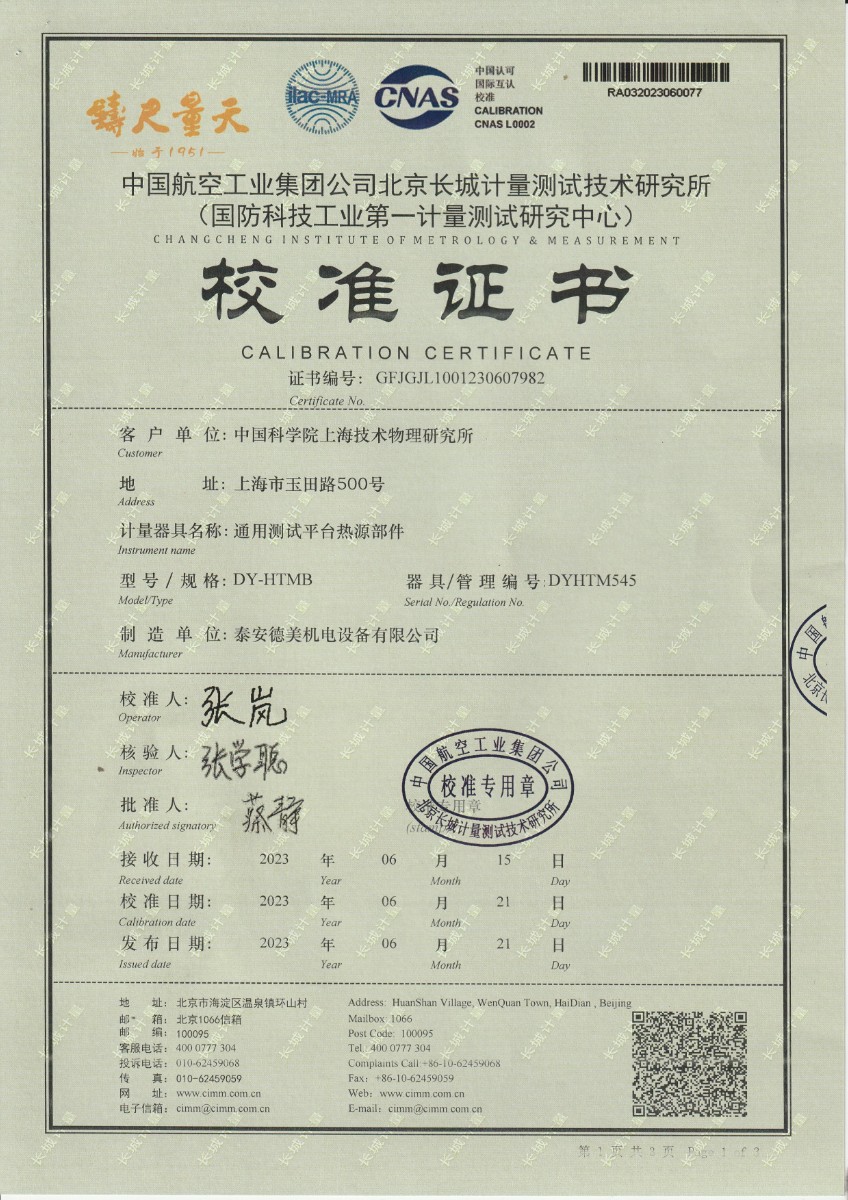 中國(guó)科學(xué)院上海技術(shù)物理研究所-通用測(cè)試平臺(tái)熱源部件(DYHTM545) 2023-7-3 本文被閱讀 11438 次
