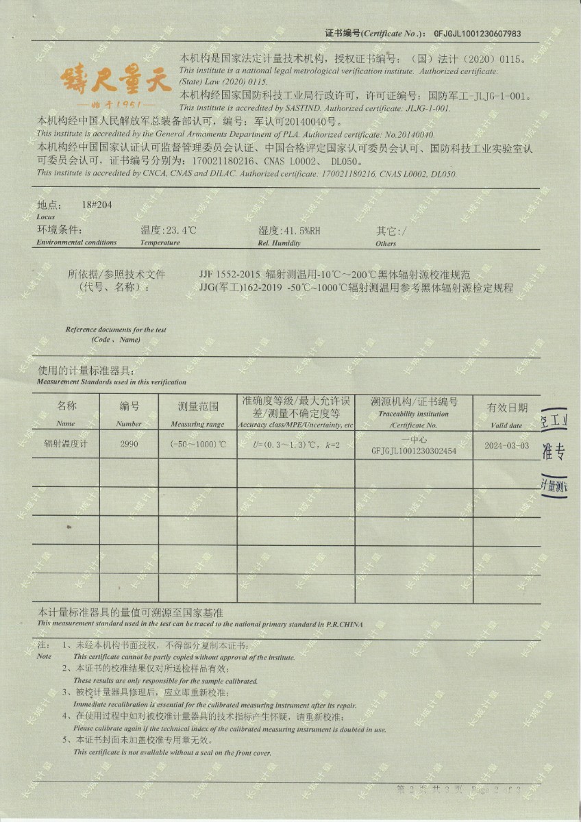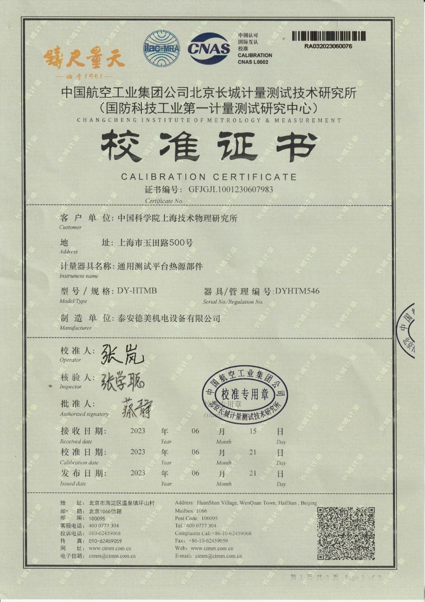 | 上一條:中國科學(xué)院上海技術(shù)物理研究所-通用測(cè)試平臺(tái)熱源部件(DYHTM545) | 下一條:高精度制冷恒溫槽(-80~100℃)校準(zhǔn)證書 |