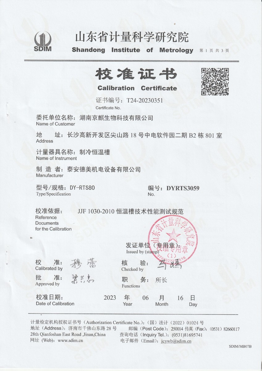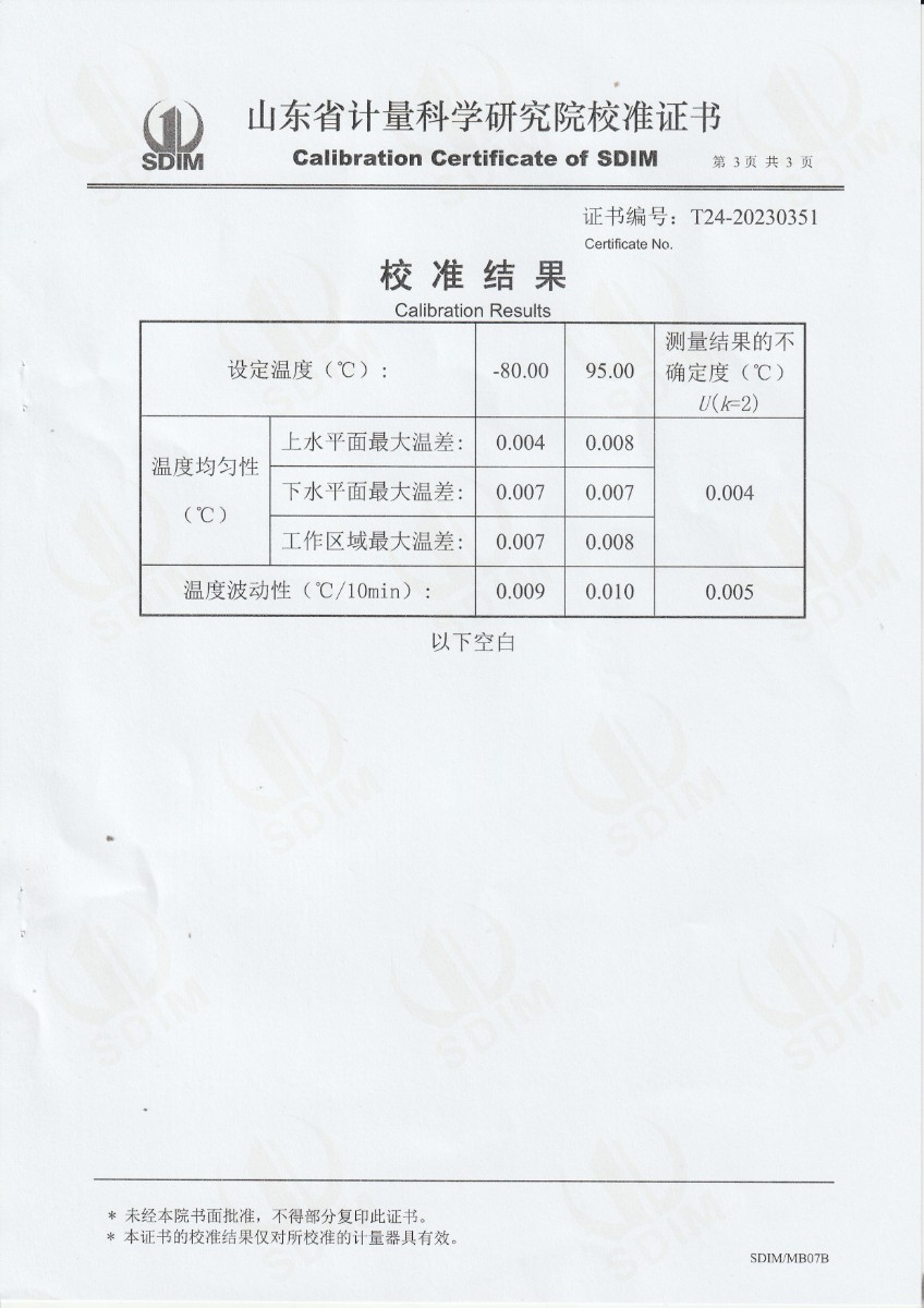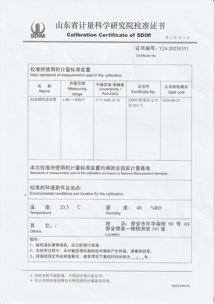 | 上一條:中國科學院上海技術物理研究所-通用測試平臺熱源部件(DYHTM546) | 下一條:高精度制冷恒溫槽(-80~100℃)校準證書 |