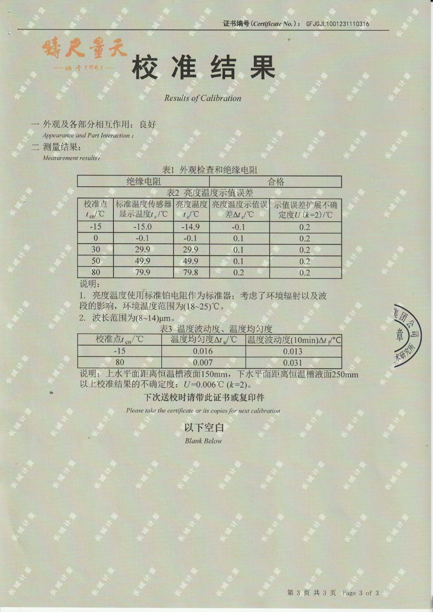 | 上一條:黑體輻射源校準(zhǔn)證書DYHT2192 | 下一條:高精度制冷恒溫槽(-80~100℃)校準(zhǔn)證書 |