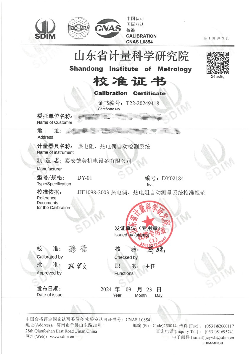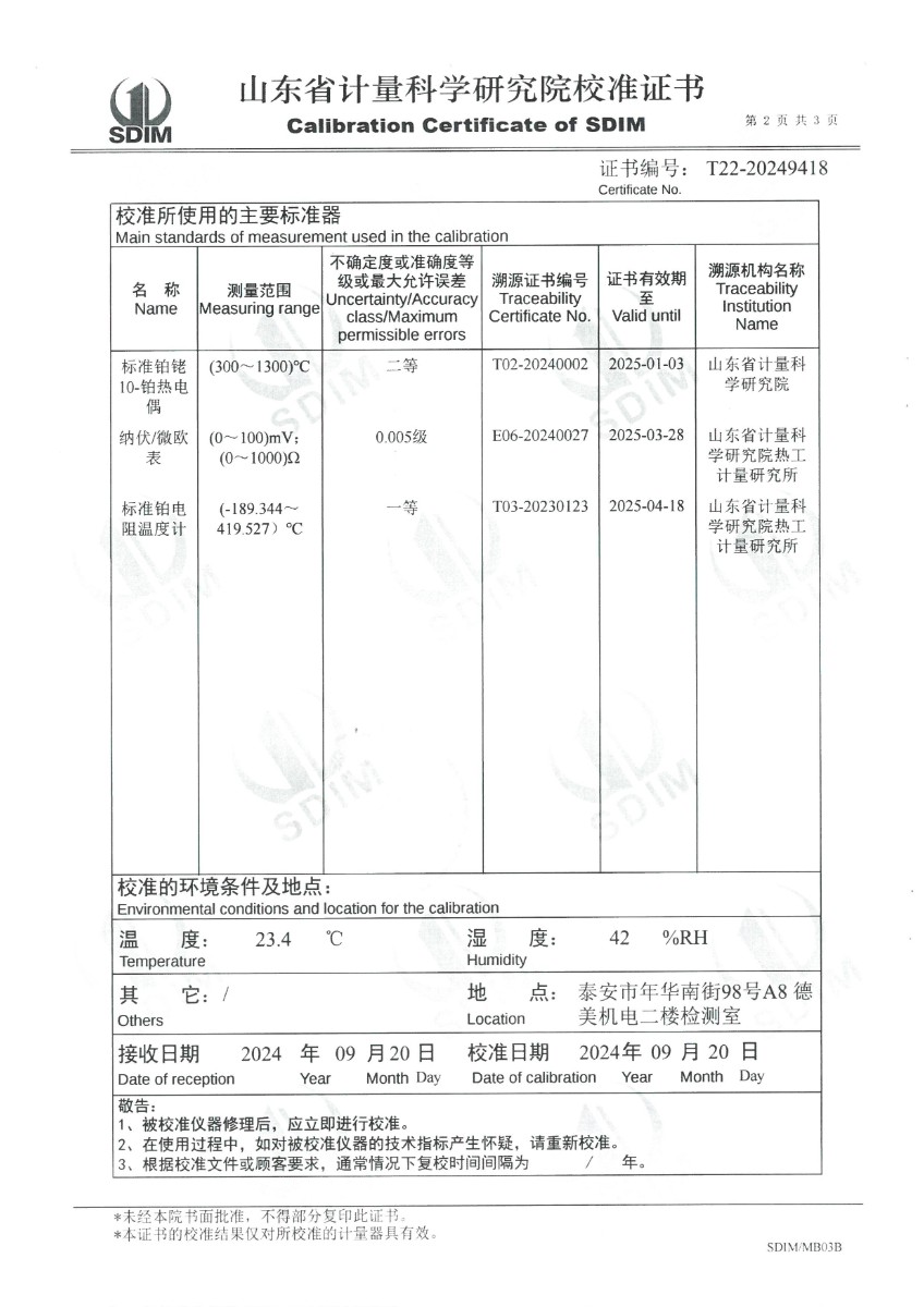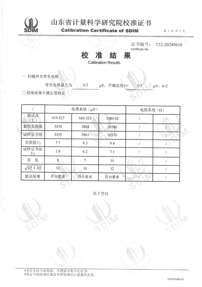 | 上一條:貴金屬熱電偶檢定爐(800~1600℃)校準(zhǔn)證書 | 下一條:高精度制冷恒溫槽(-80~100℃)校準(zhǔn)證書 |