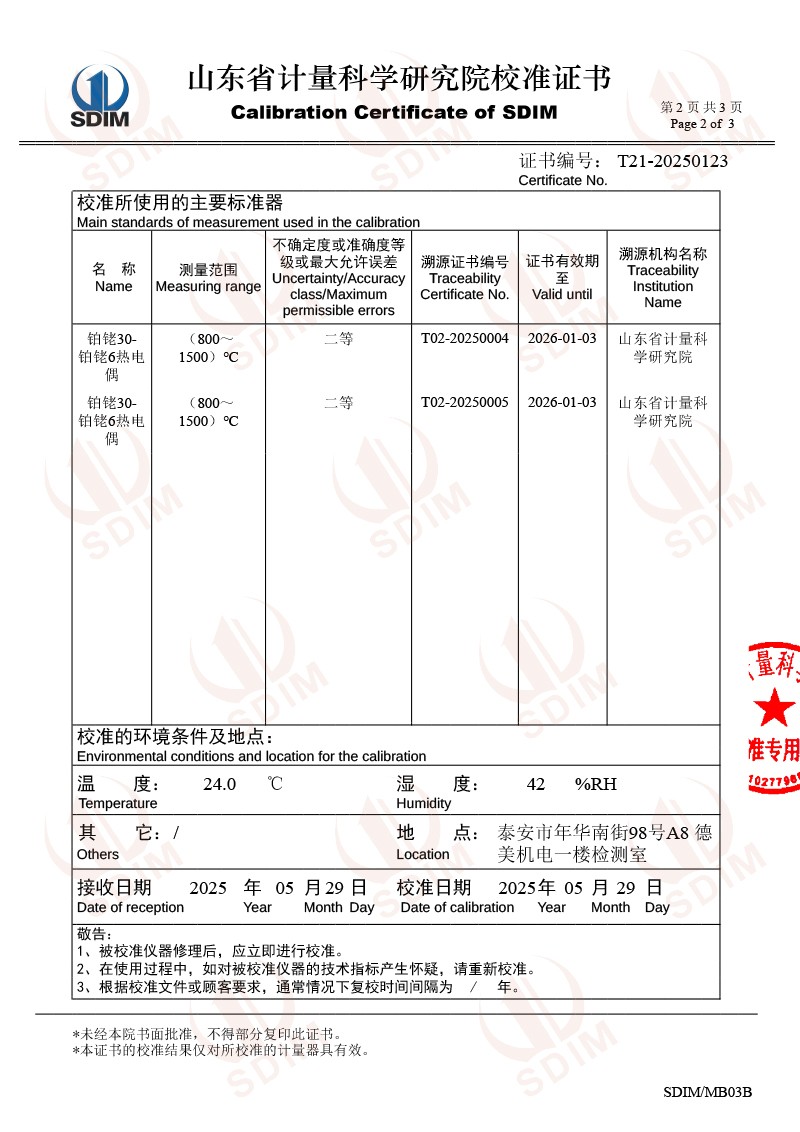 高溫貴金屬熱電偶檢定爐(800-1600℃)校準證書 2025-6-5 本文被閱讀 3382 次