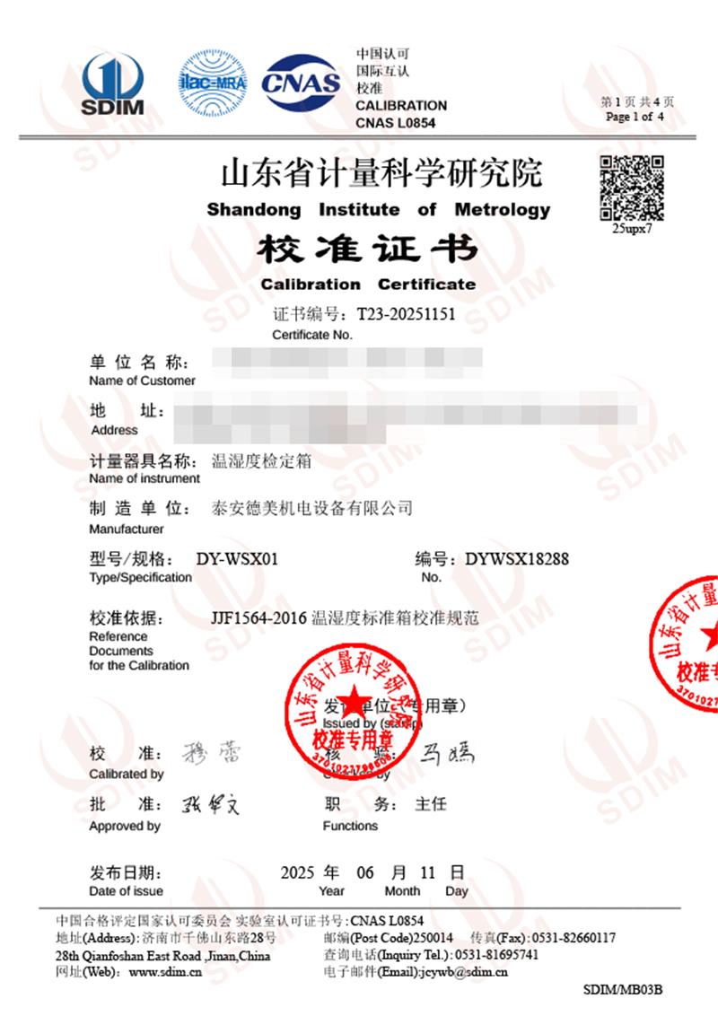 | 上一條:溫濕度檢定箱(-20-65℃)校準(zhǔn)證書(shū) | 下一條:高精度制冷恒溫槽(-80~100℃)校準(zhǔn)證書(shū) |