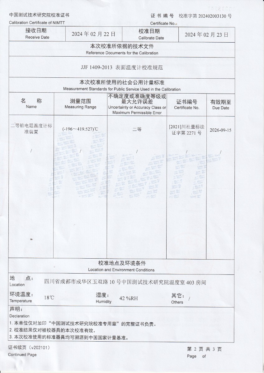 上一條:表面溫度計校準(zhǔn)裝置下一條:高精度制冷恒溫槽(-80~100℃)校準(zhǔn)證書