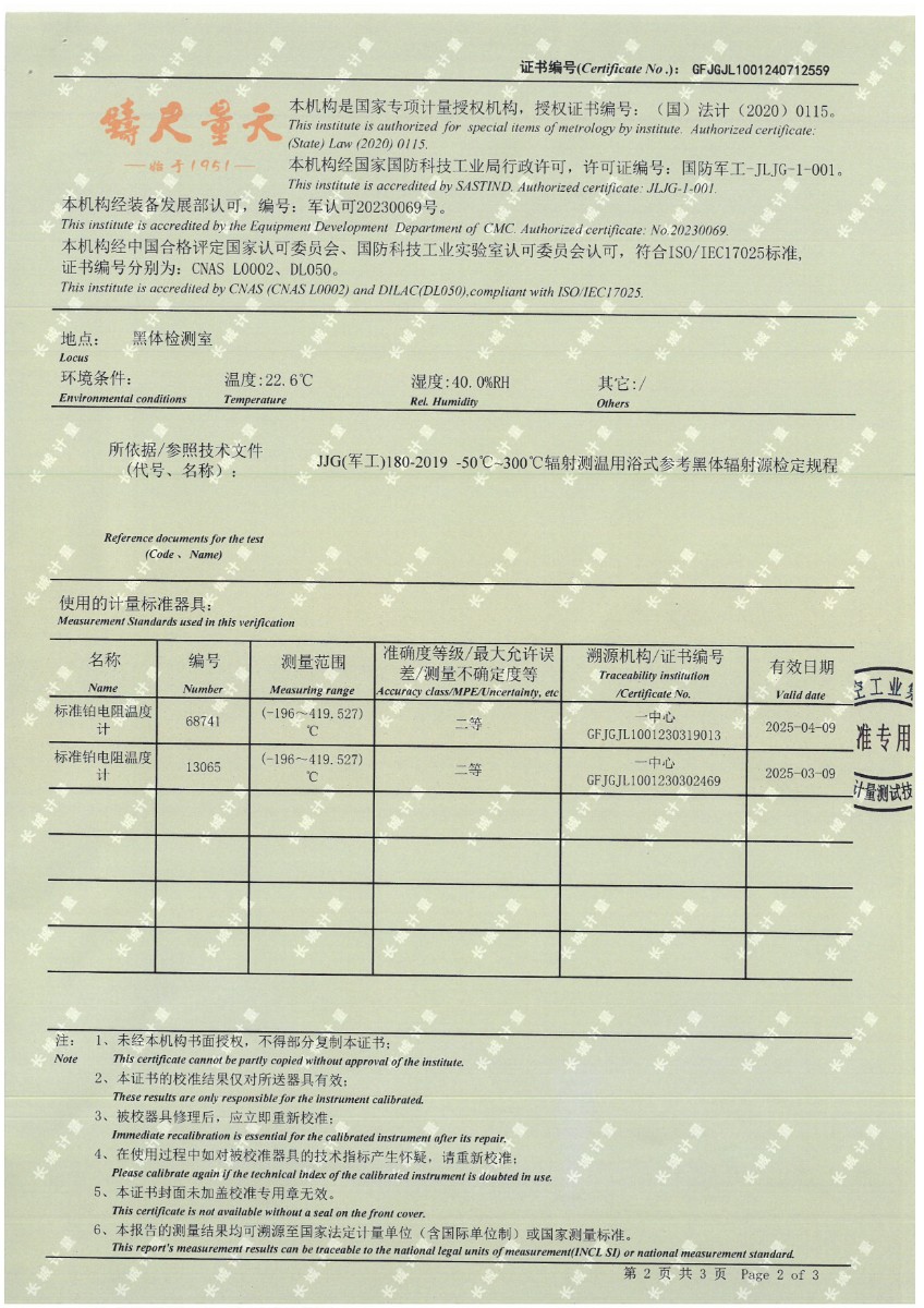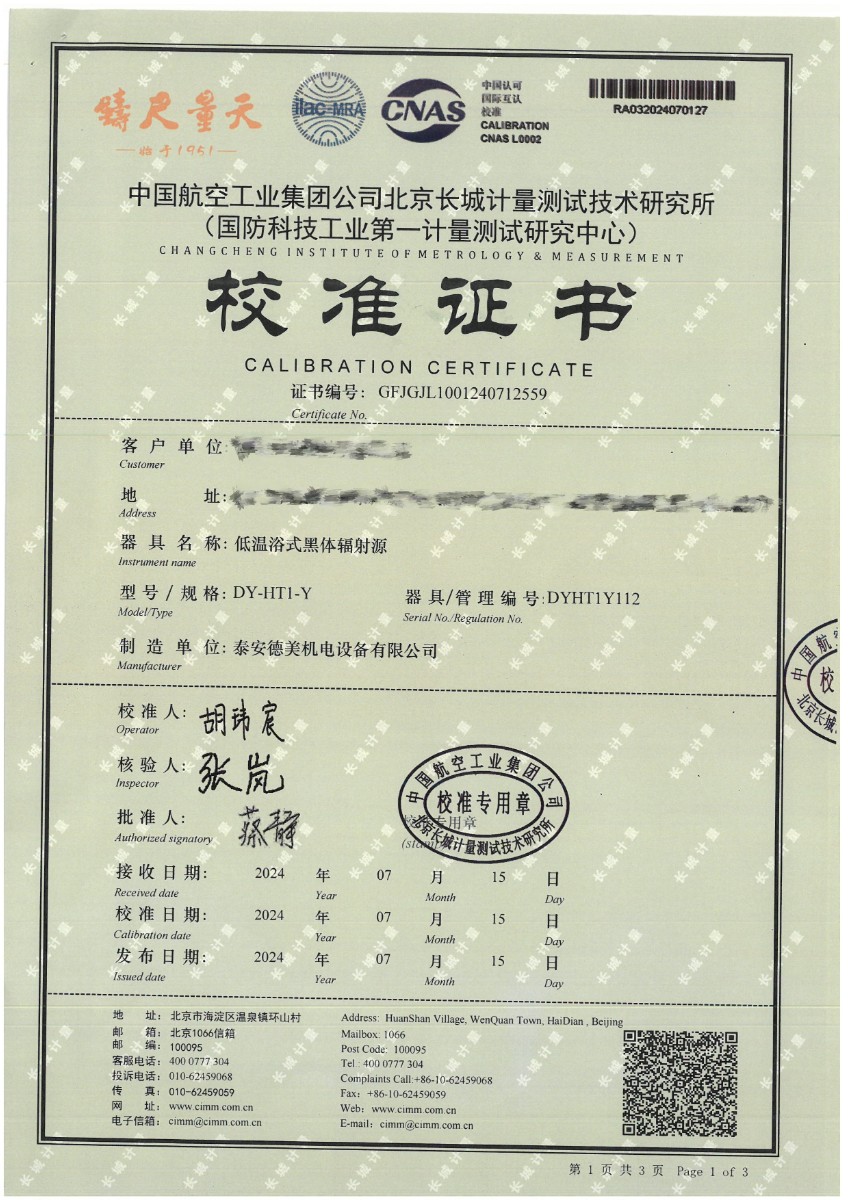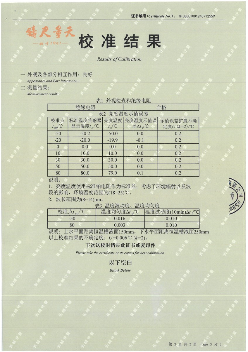 | 上一條:標(biāo)準(zhǔn)水銀溫度計校準(zhǔn)證書 | 下一條:高精度制冷恒溫槽(-80~100℃)校準(zhǔn)證書 |