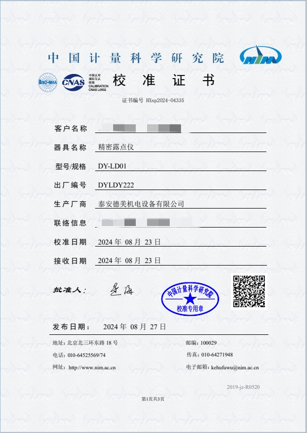 露點儀校準(zhǔn)證書 2024-9-3 本文被閱讀 7791 次