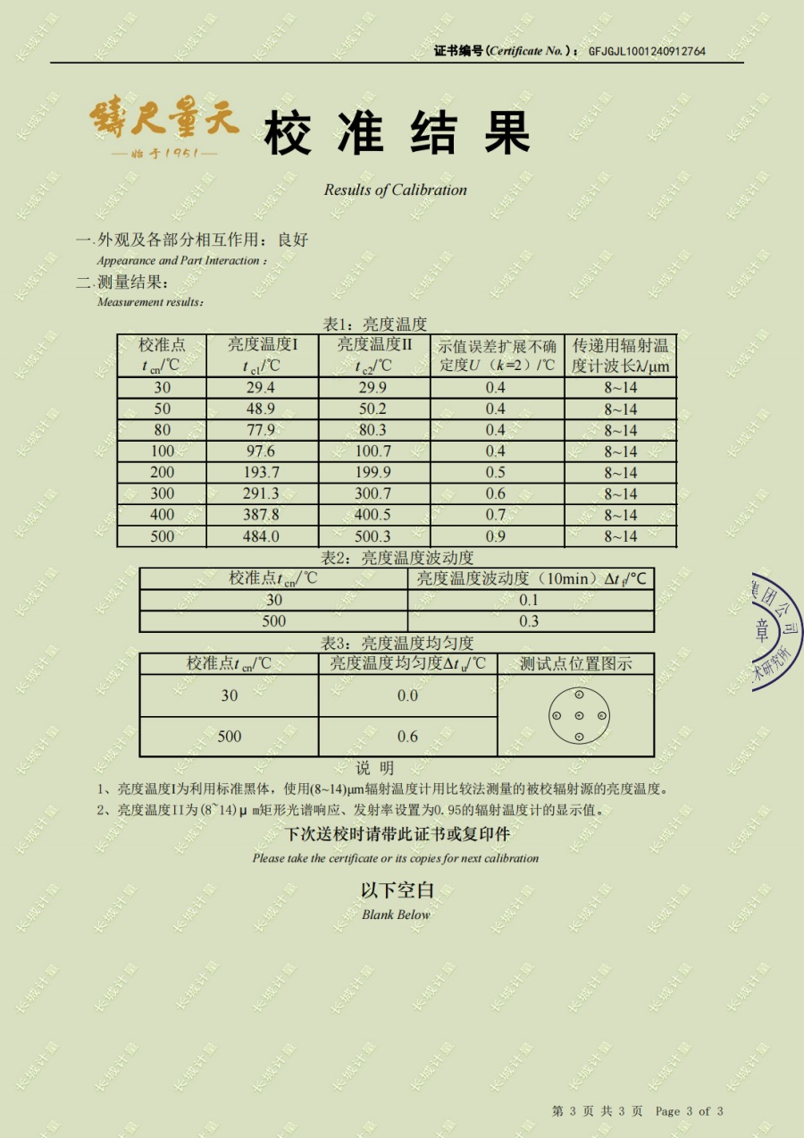 面源黑體爐(室溫+5-500℃)校準(zhǔn)證書 2024-10-17 本文被閱讀 6470 次