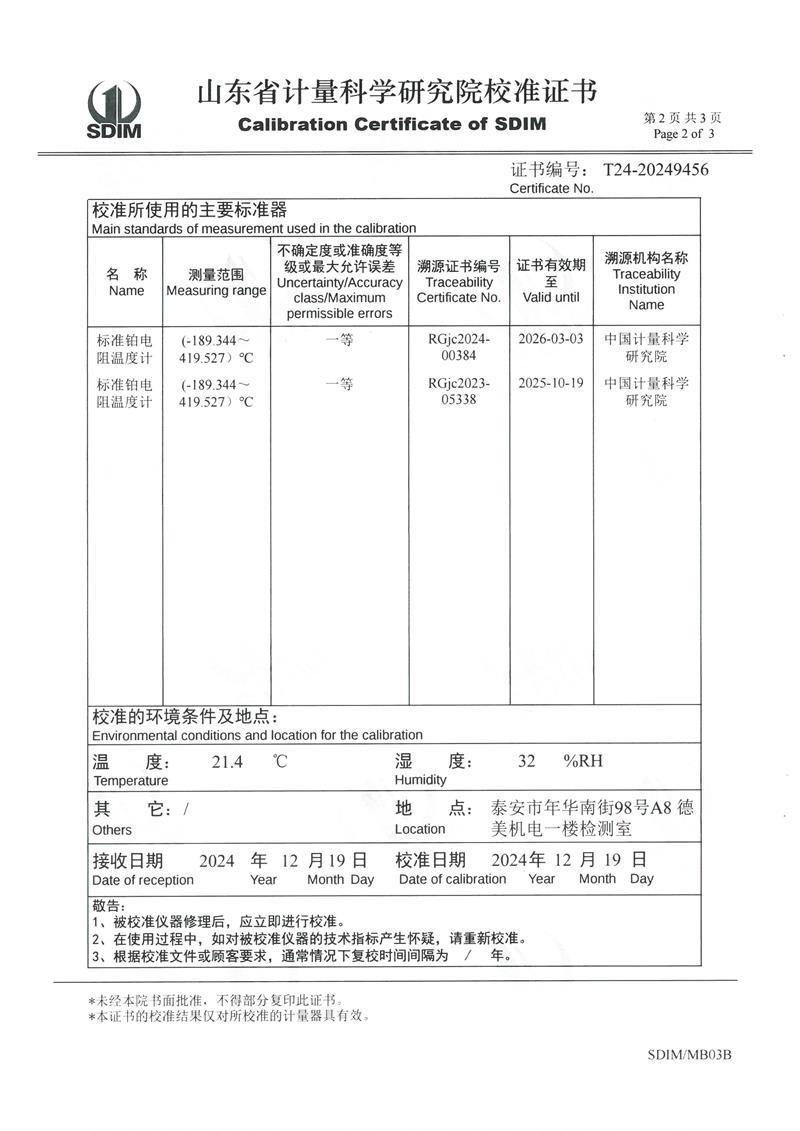 | 上一條:廉金屬熱電偶檢定爐(300~1200℃)校準(zhǔn)證書 | 下一條:高精度制冷恒溫槽(-80~100℃)校準(zhǔn)證書 |