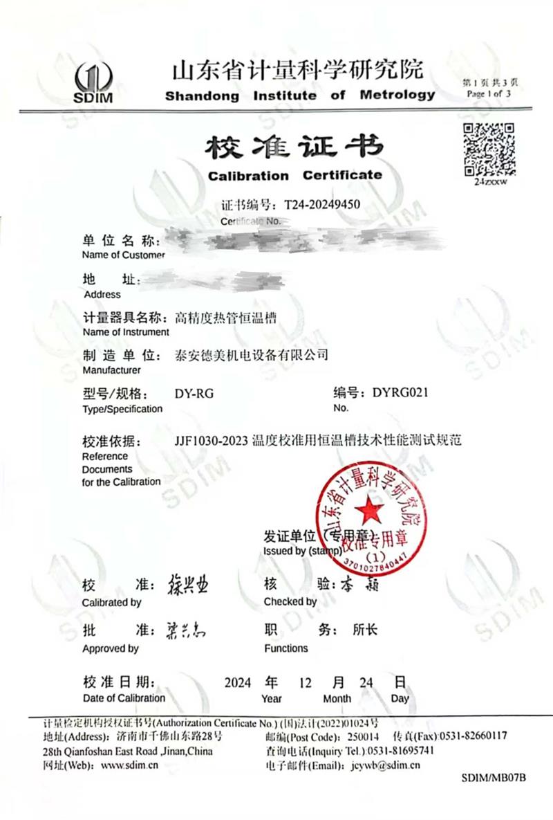 | 上一條:油槽(70~300℃)校準(zhǔn)證書 | 下一條:高精度制冷恒溫槽(-80~100℃)校準(zhǔn)證書 |