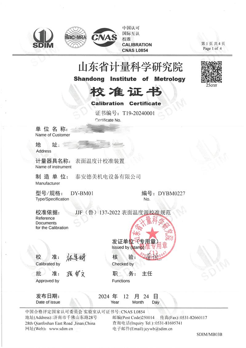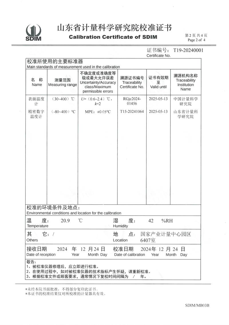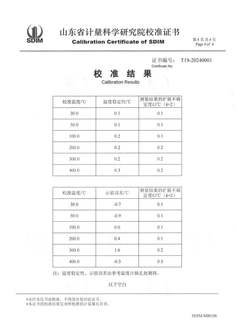 表面溫度計(jì)校準(zhǔn)裝置(室溫+5℃~400℃)校準(zhǔn)證書 2025-1-25 本文被閱讀 5825 次