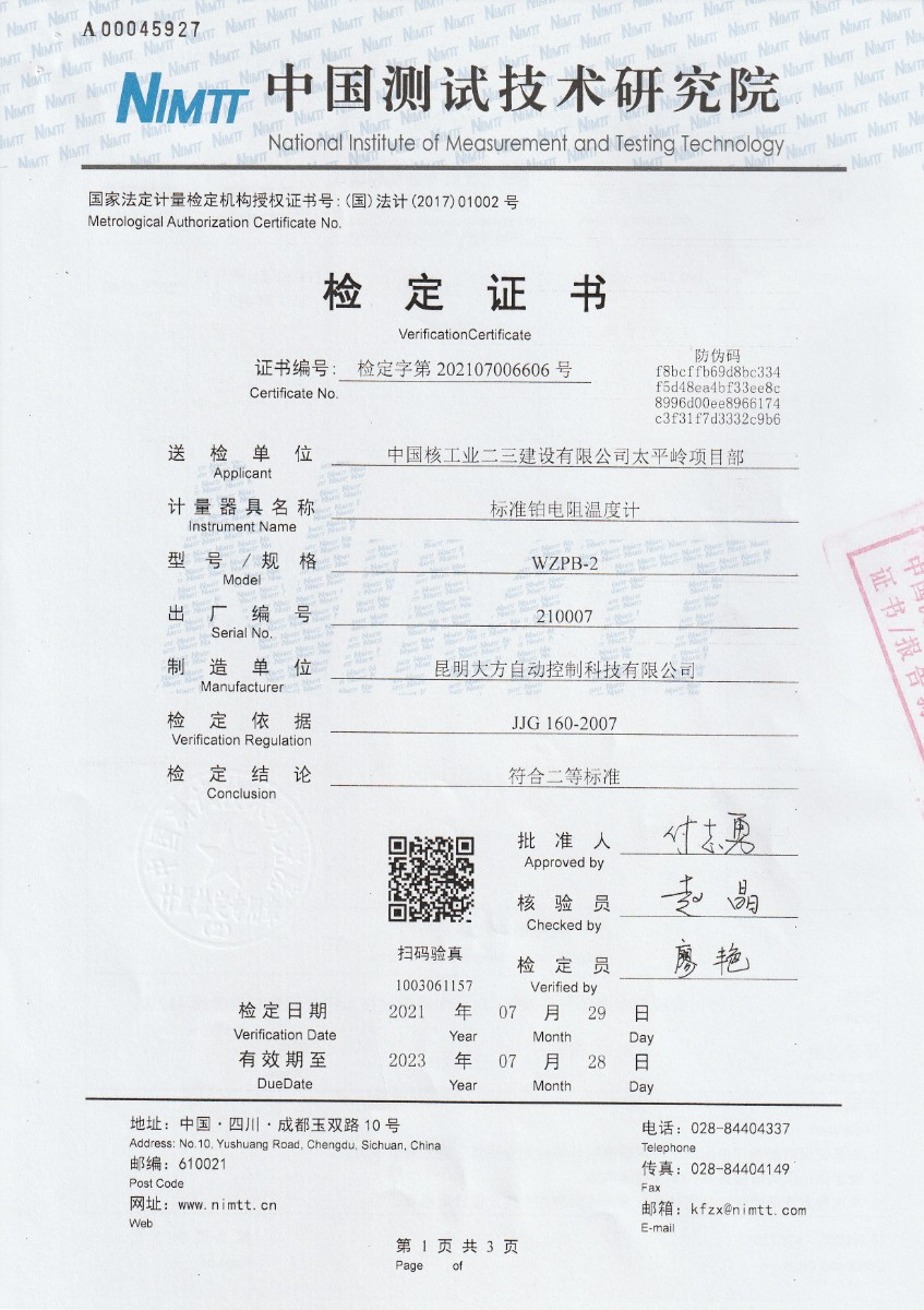 上一條:中國人民解放軍63672部隊-黑體輻射源下一條:高精度制冷恒溫槽(-80~100℃)校準證書