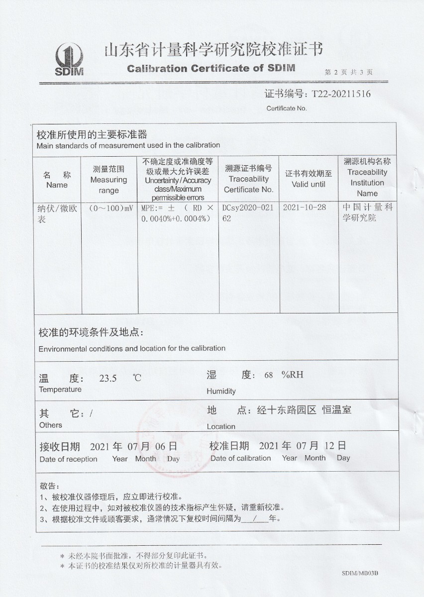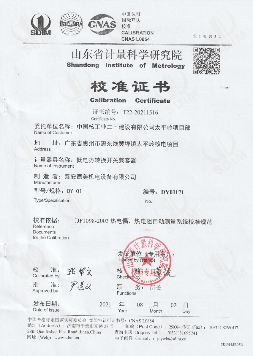 上一條:中國核工業(yè)二三建設有限公司太平嶺項目部水平尺專用校準臺下一條:高精度制冷恒溫槽(-80~100℃)校準證書