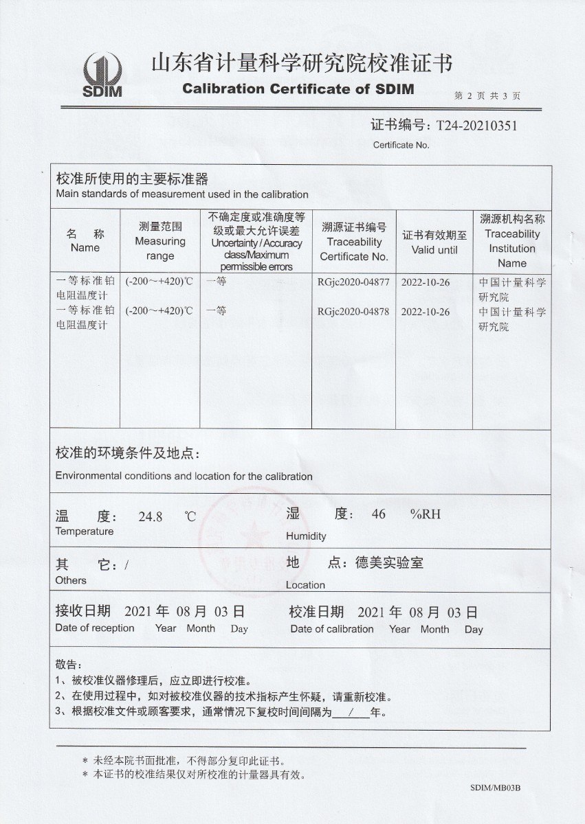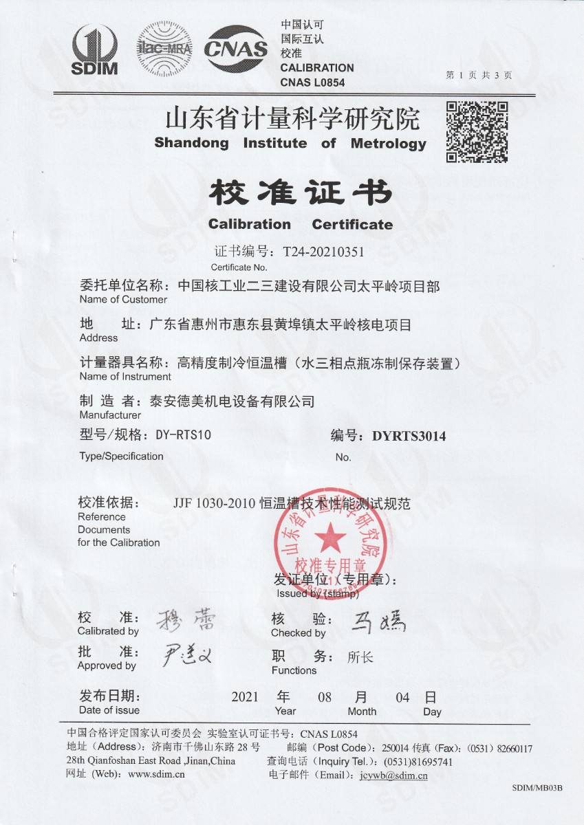 | 上一條:中國核工業(yè)二三建設(shè)有限公司太平嶺項目部-熱電偶檢定爐 | 下一條:高精度制冷恒溫槽(-80~100℃)校準證書 |
