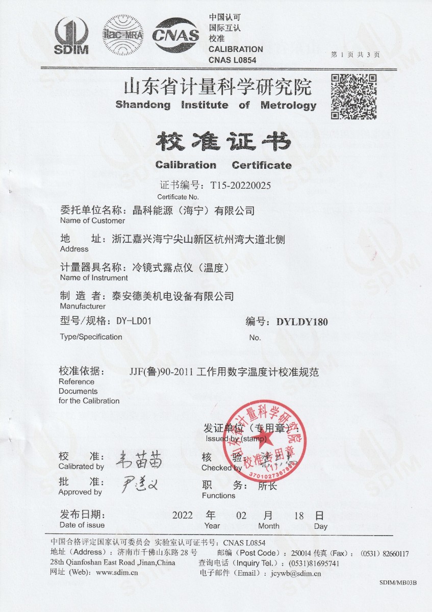 | 上一條:河北京車軌道交通車輛裝備有限公司-冷鏡式露點(diǎn)儀檢定證書 | 下一條:露點(diǎn)儀校準(zhǔn)系統(tǒng)校準(zhǔn)證書 |
