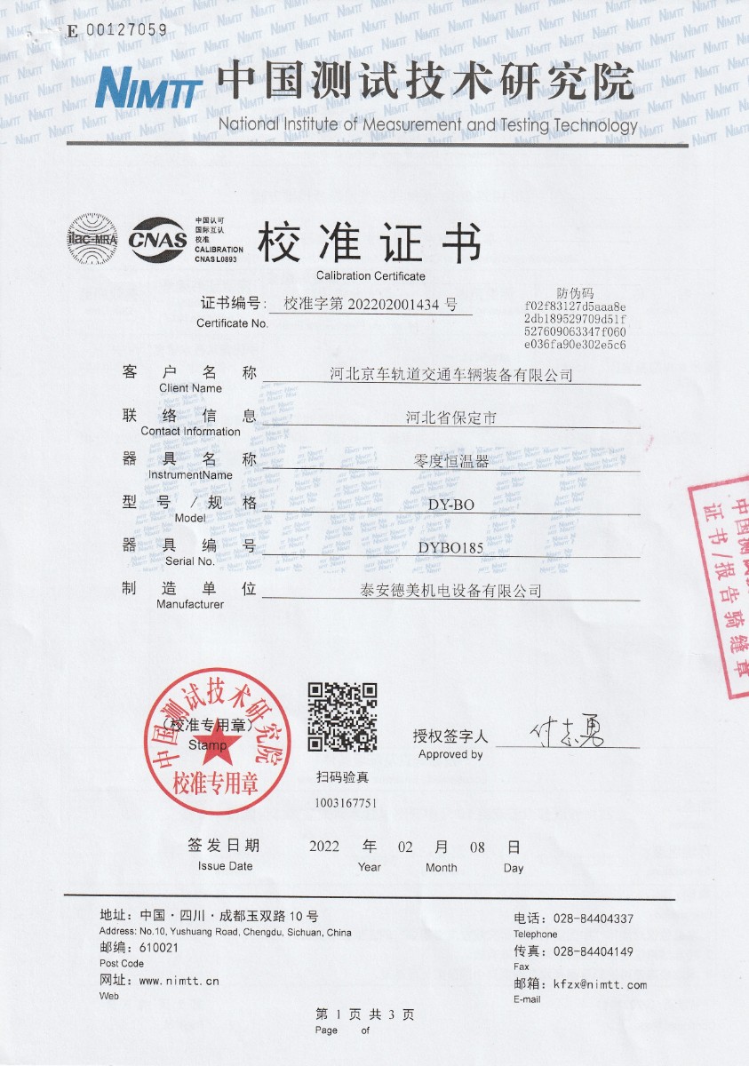 | 上一條:河北京車軌道交通車輛裝備有限公司S分度補(bǔ)償導(dǎo)線 | 下一條:高精度制冷恒溫槽(-80~100℃)校準(zhǔn)證書 |