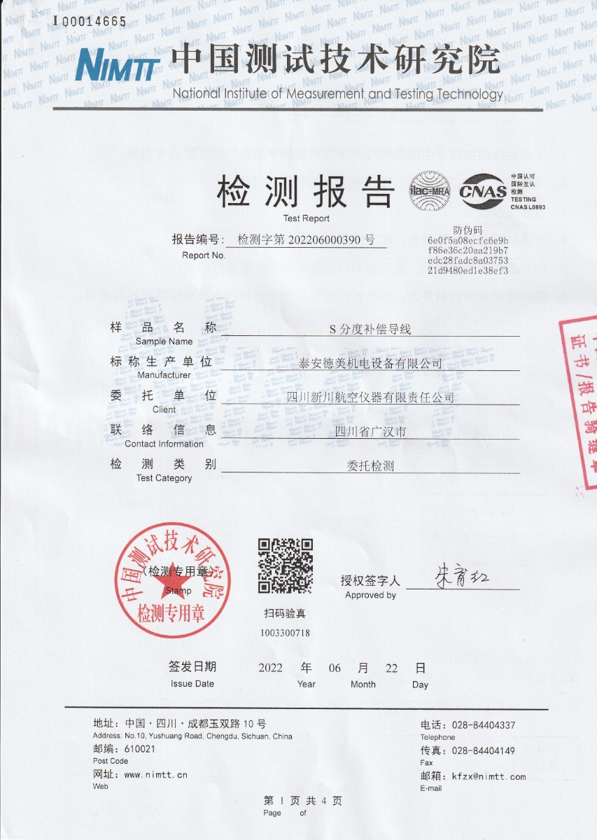 四川新川航空儀器有限責(zé)任公司-S分度補(bǔ)償導(dǎo)線