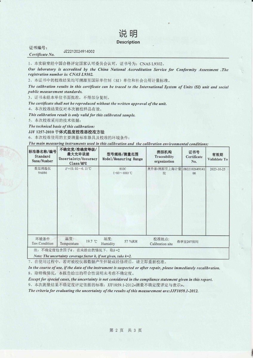 | 上一條:云谷(固安)科技有限公司 溫濕度巡檢儀 | 下一條:高精度制冷恒溫槽(-80~100℃)校準(zhǔn)證書(shū) |