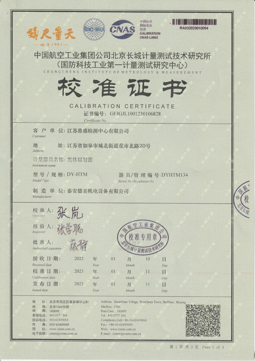 江蘇鼎盛檢測有限公司 黑體輻射源 2023-1-28 本文被閱讀 12767 次