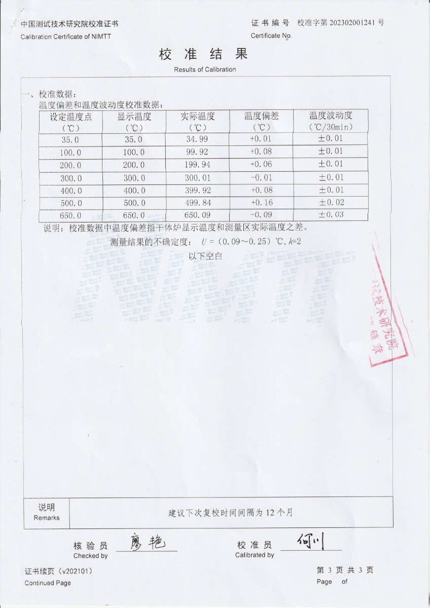 | 上一條:泰安德美機(jī)電設(shè)備有限公司 TRT4.82 精密輻射溫度計(jì) 校準(zhǔn)證書 | 下一條:高精度制冷恒溫槽(-80~100℃)校準(zhǔn)證書 |