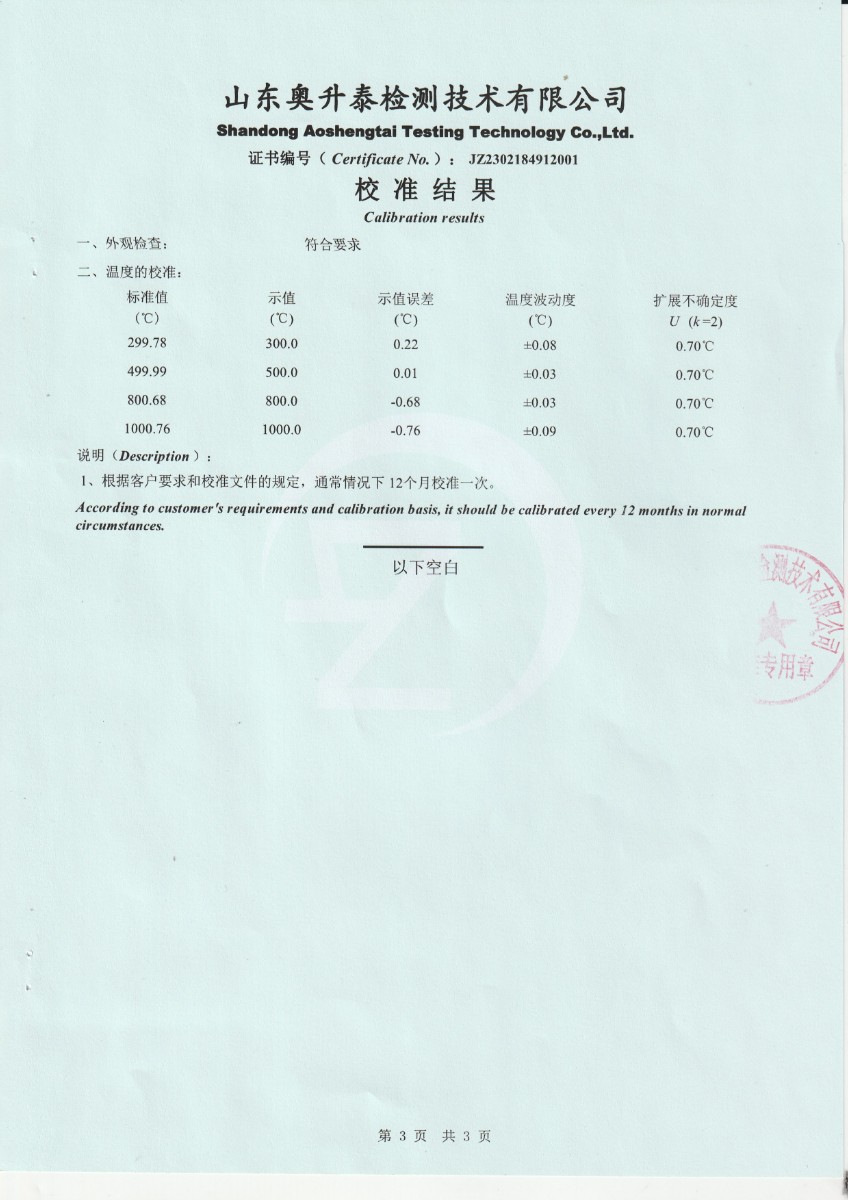 | 上一條:西安天元航空科技股份有限公司 零點恒溫器 校準(zhǔn)證書 | 下一條:高精度制冷恒溫槽(-80~100℃)校準(zhǔn)證書 |