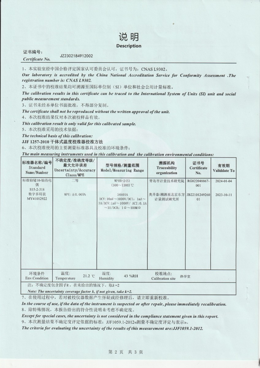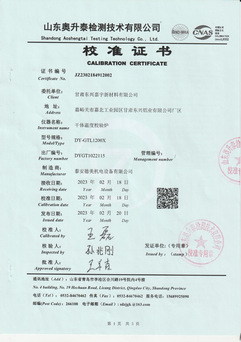 | 上一條:甘肅東興嘉宇新材料有限公司 干體溫度校驗(yàn)爐 校準(zhǔn)證書(1) | 下一條:高精度制冷恒溫槽(-80~100℃)校準(zhǔn)證書 |
