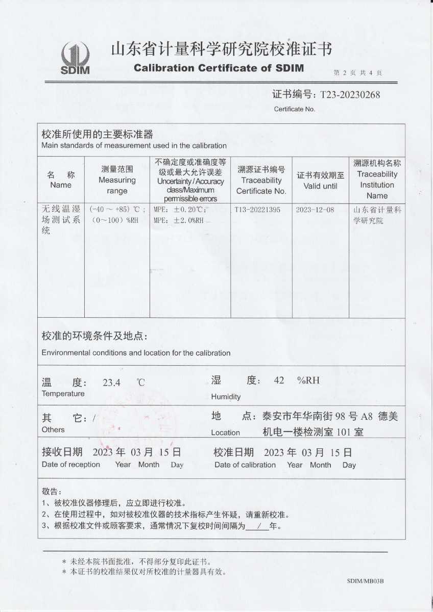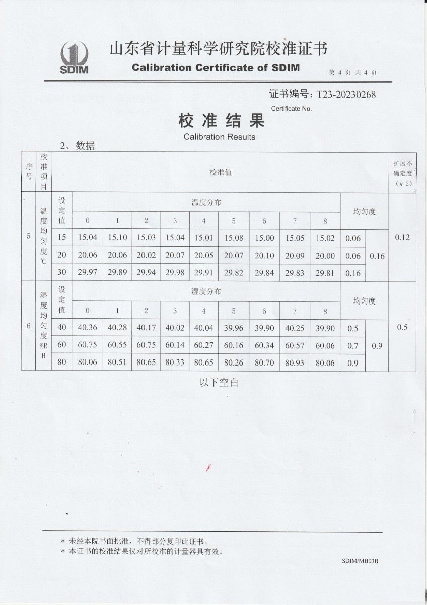 | 上一條:廈門新能安科技有限公司 溫濕度檢定箱 校準證書 | 下一條:高精度制冷恒溫槽(-80~100℃)校準證書 |