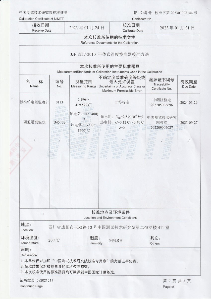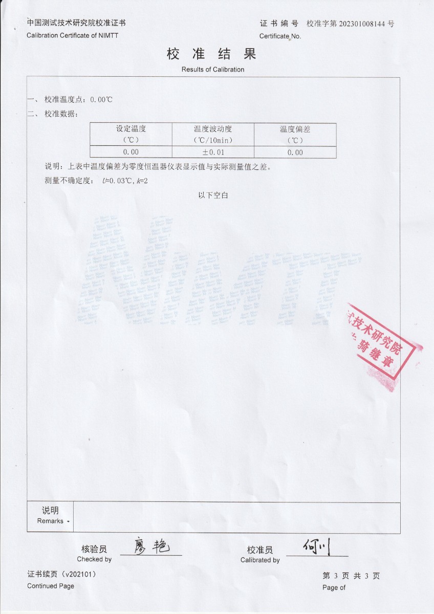 上一條:甘肅東興嘉寧新材料有限公司 干體溫度校驗(yàn)爐 校準(zhǔn)證書(shū)下一條:高精度制冷恒溫槽(-80~100℃)校準(zhǔn)證書(shū)